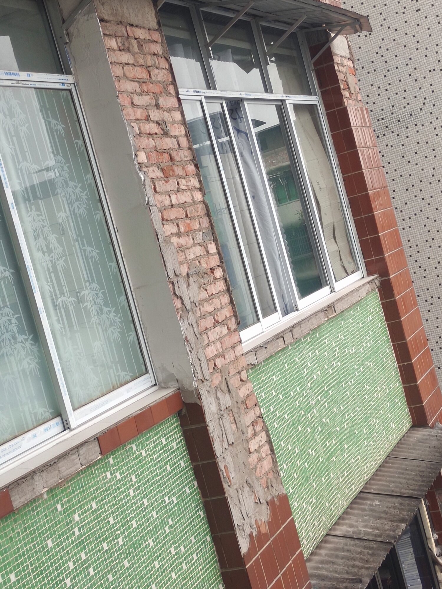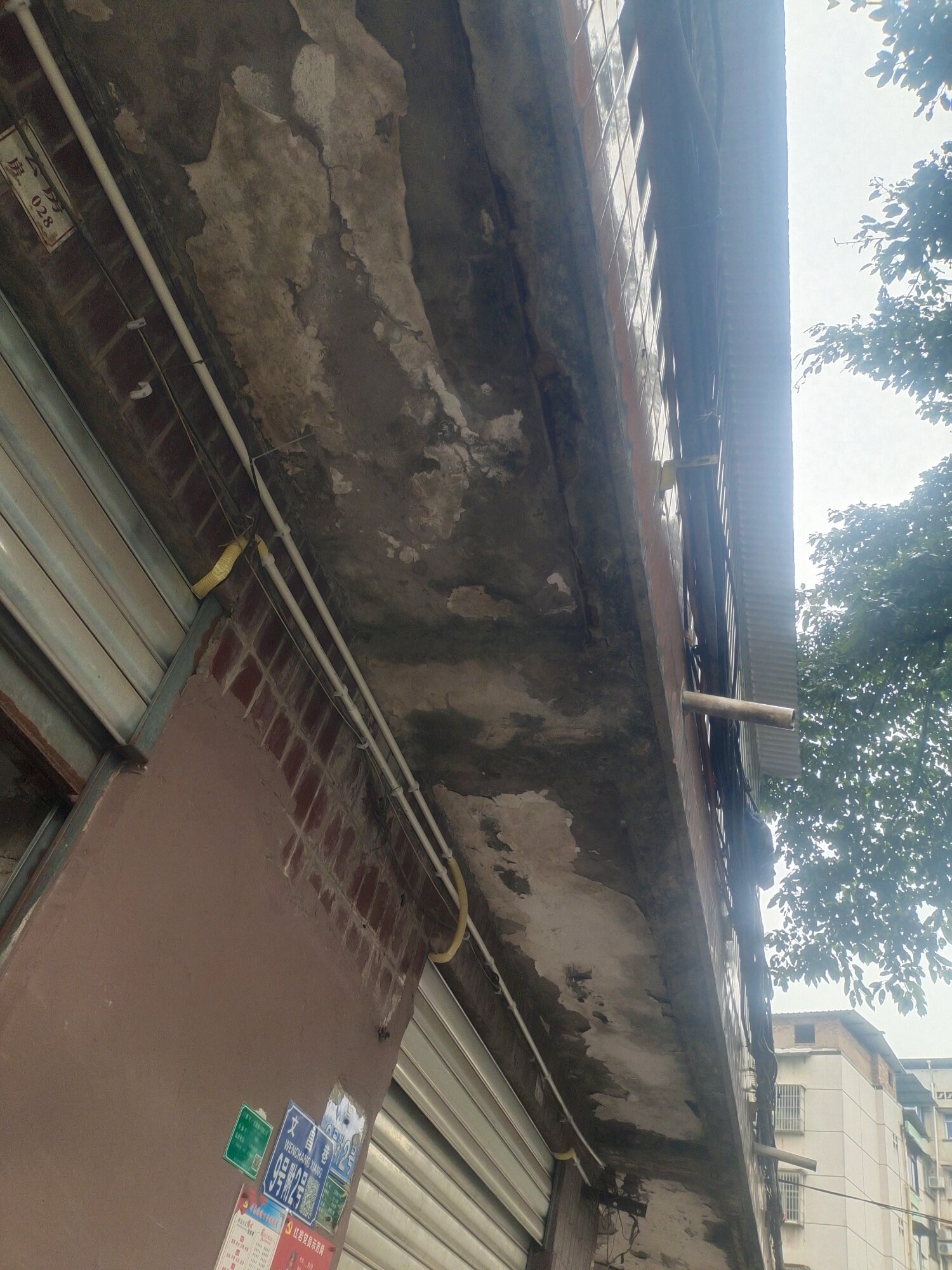 危房维修,百步梯文昌巷9号楼危房维修,墙体上的迟砖掉落严重