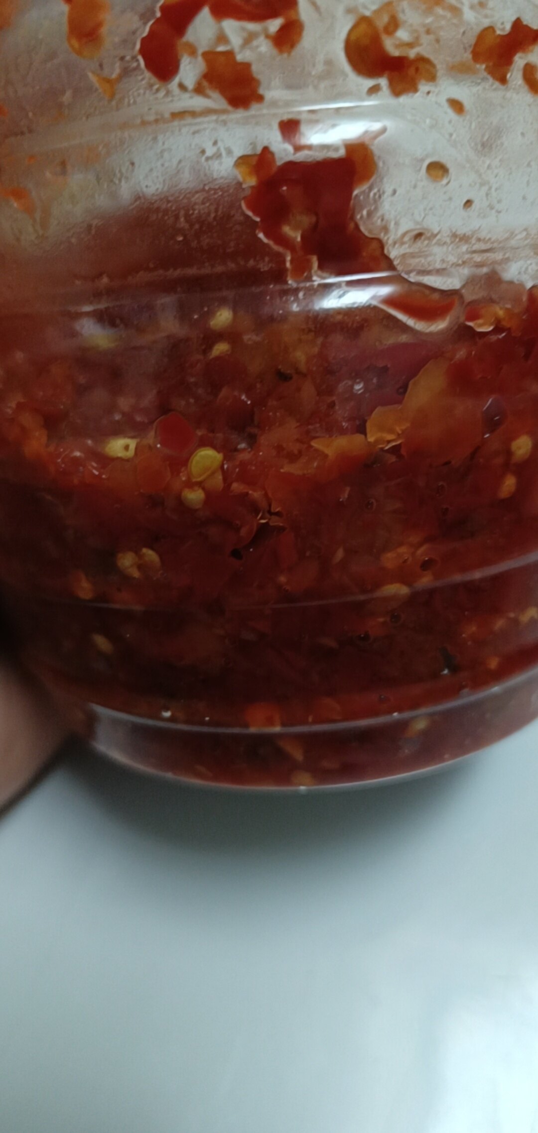 我做辣椒更简单,直接用料理机打碎,然后加盐、花椒面、姜粒,混合装罐OK