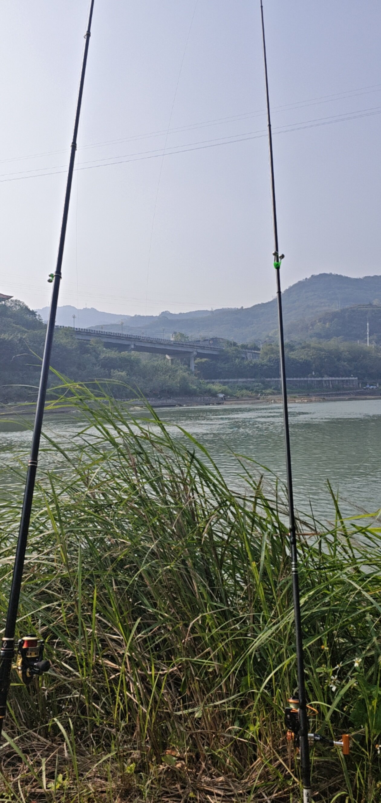 来呦钓鱼哦,綦河的清波都要上岸咬人了