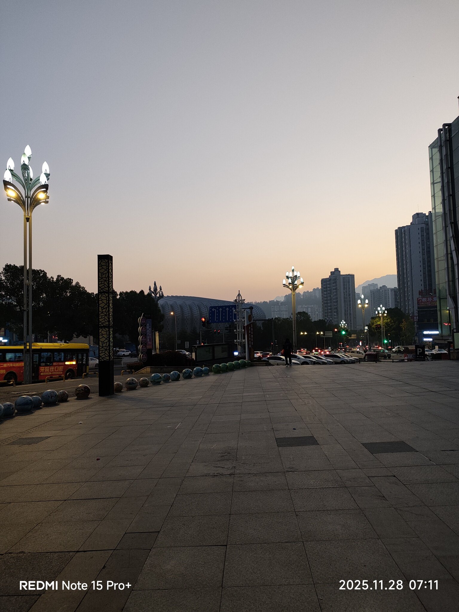 清晨七点的路灯还没退场,城市刚揉开眼。
