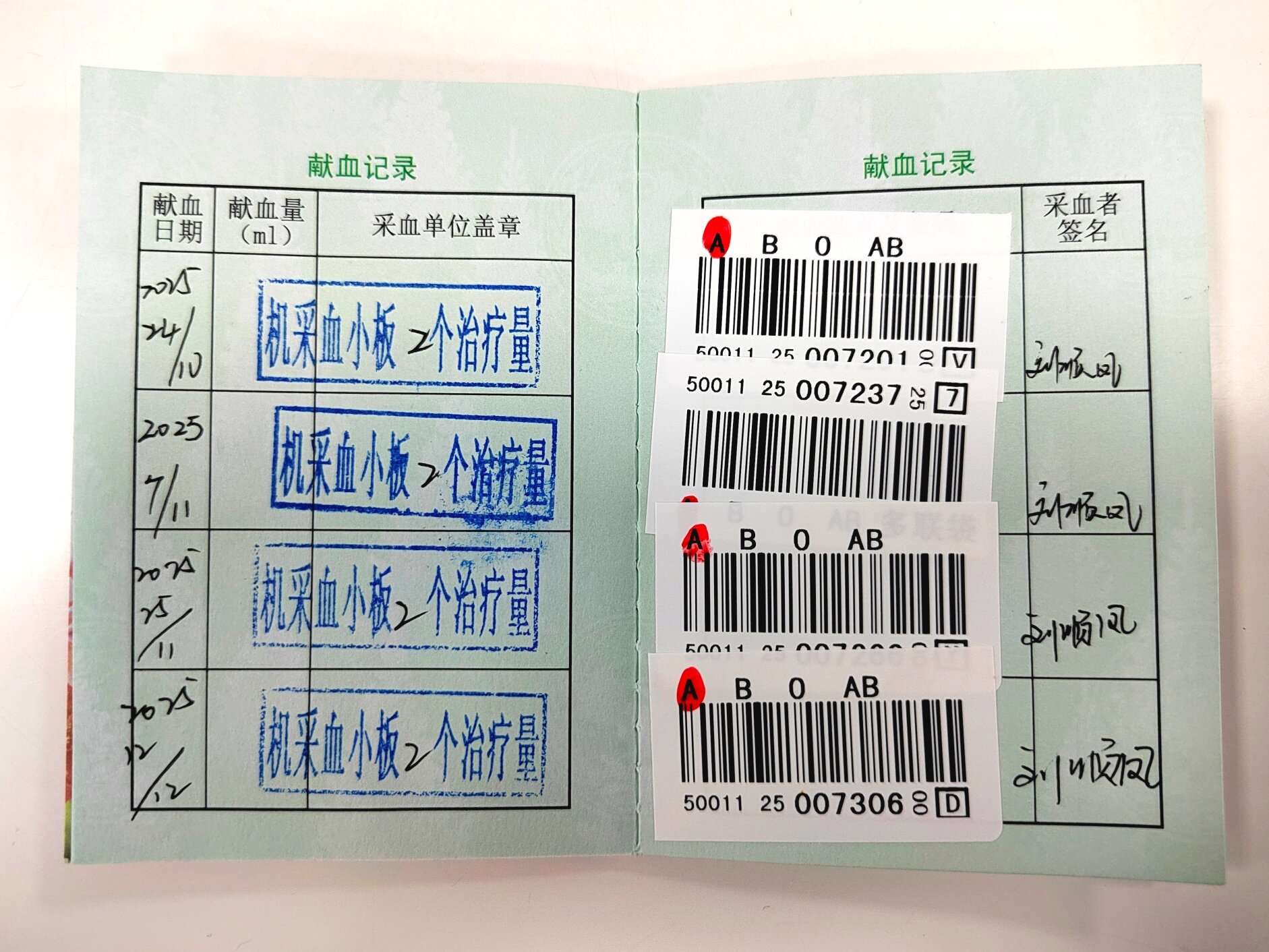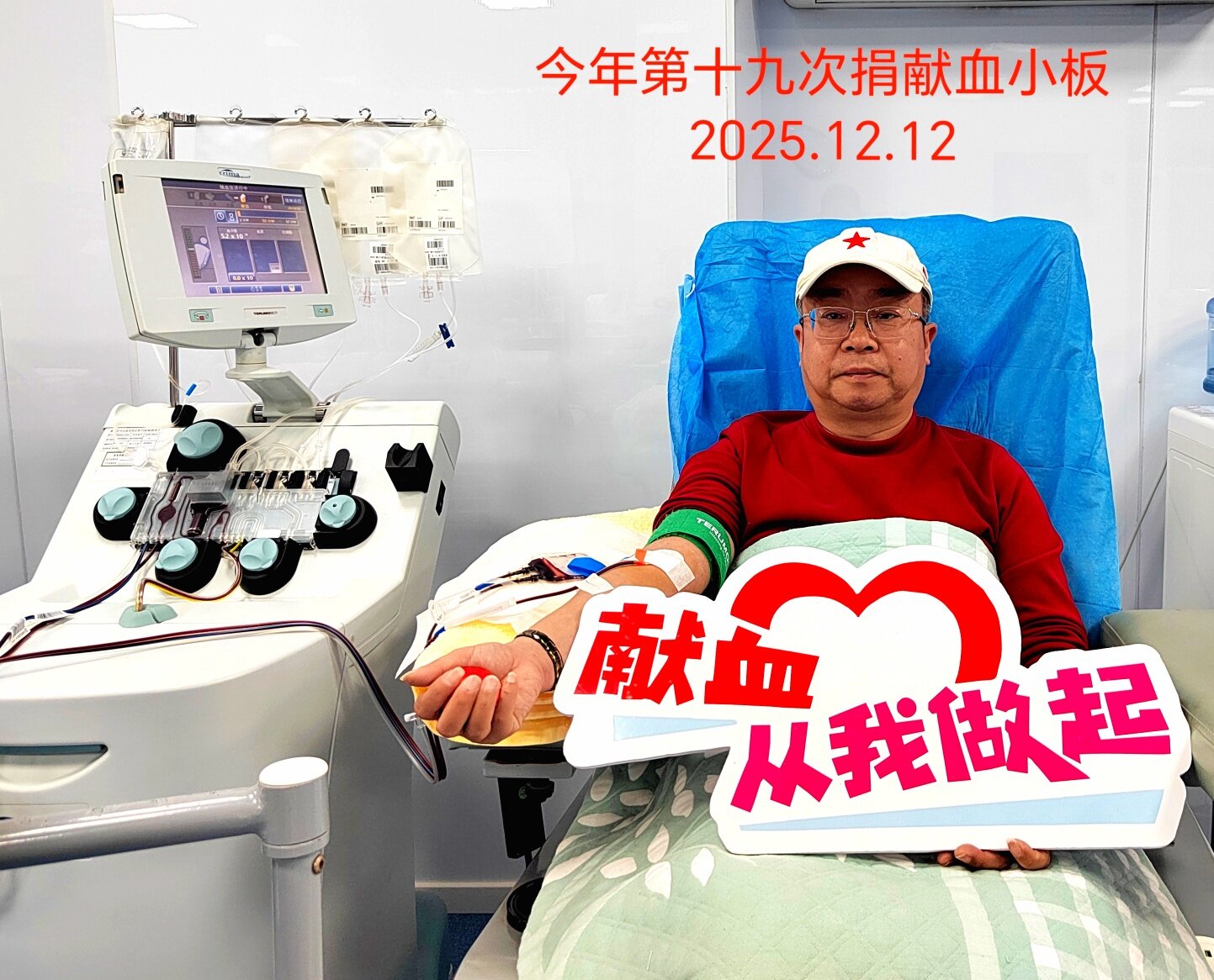 今年第十九次捐献血小板。