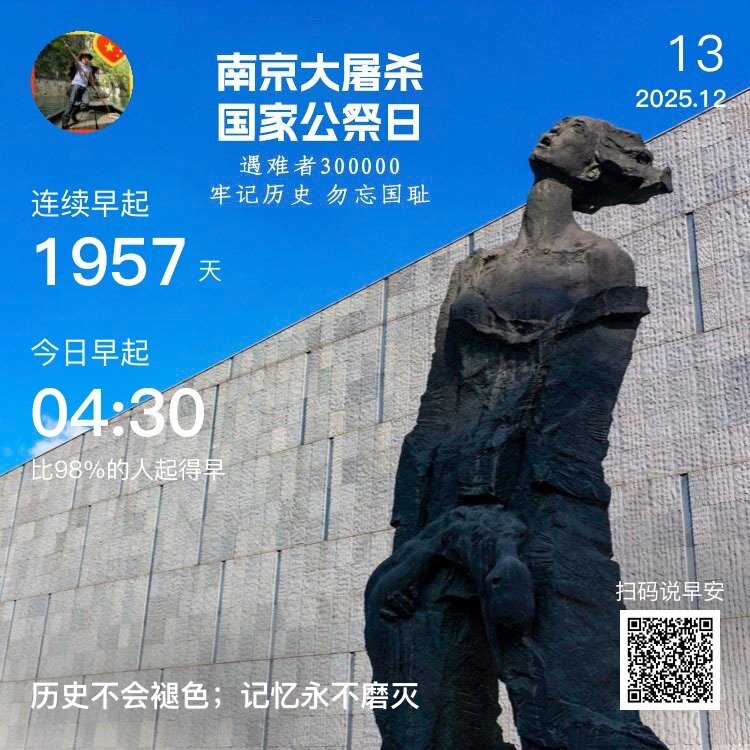 今天是南京大屠杀死难者GJ公祭日,不忘曾经烽烟起,心中长鸣警钟声。铭记历史,珍爱和平!