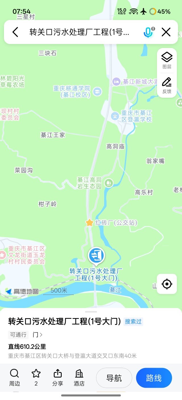 离移通还有两公里左右距离,在转关口大桥北桥头,转关口大桥污水处理厂对面