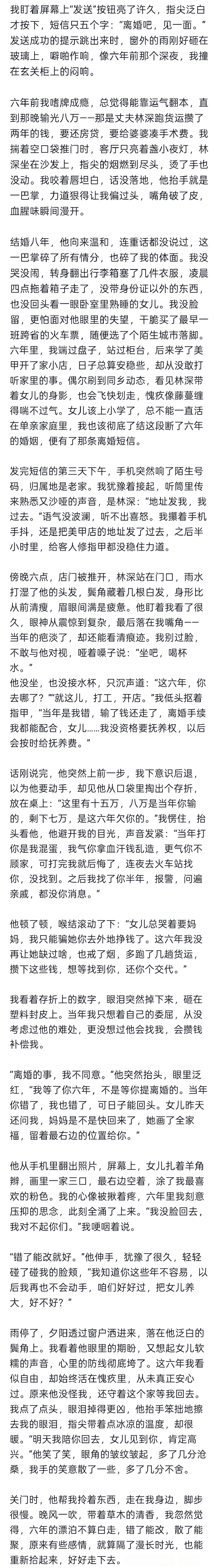 要不要我把图片发给你看看?我们还没有走到那一步鸭!你看看六年回来内心深处的感慨。