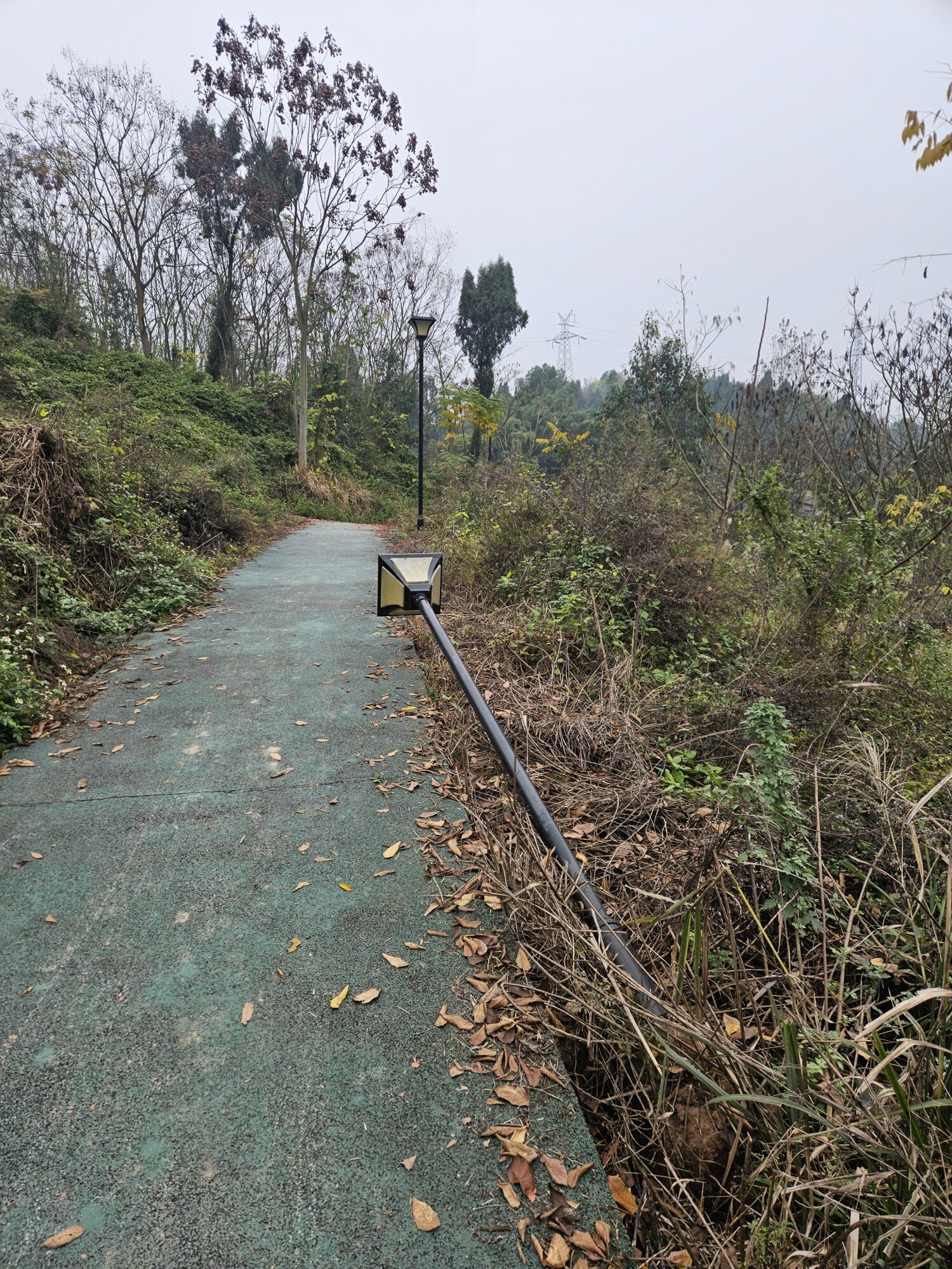 亲水河公园,沿途都坏了好多设施 有电杆倒塌,排水沟盖子被砸破。 落石,滑坡等等