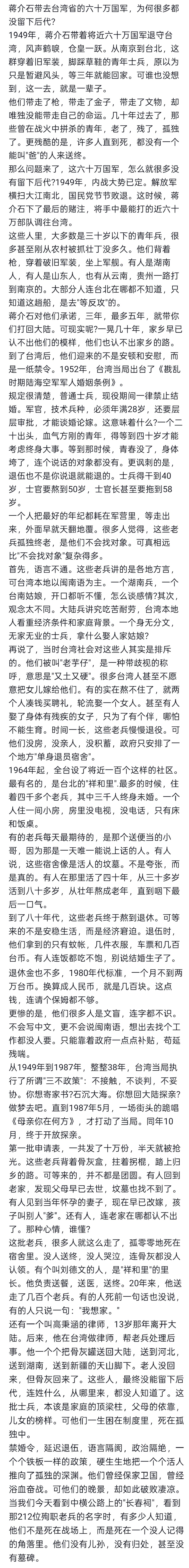 ***败退TW带过去60万老兵怎样了?