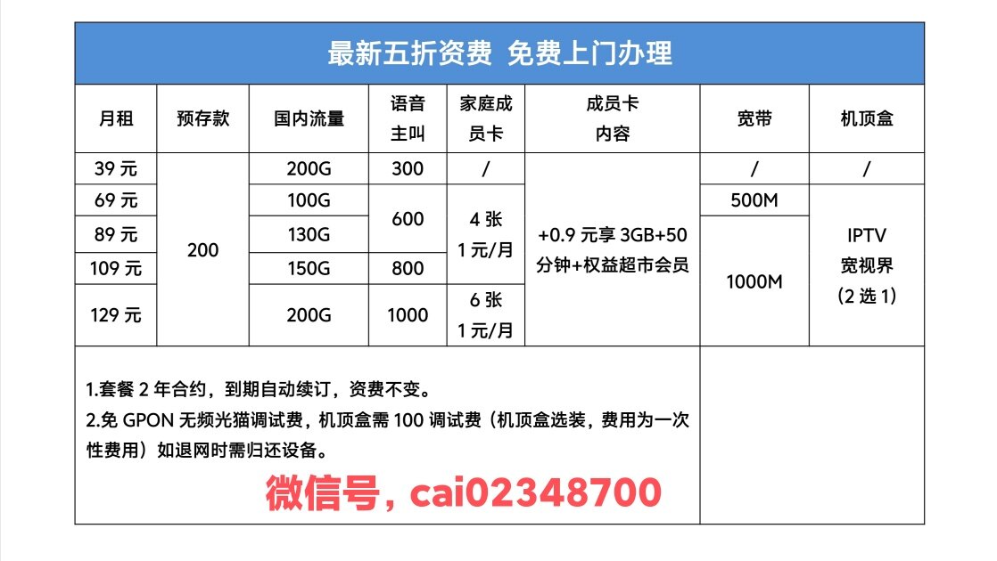 五折手机套餐,流量多多