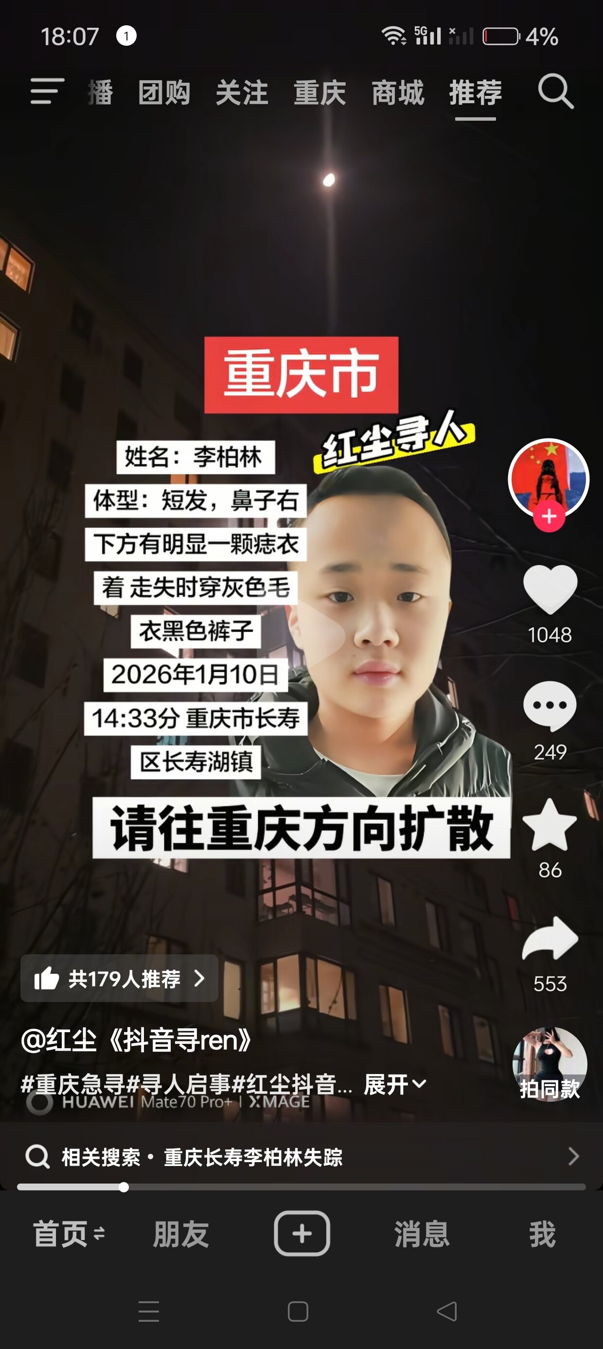 紧急寻人,如有看到必有重酬