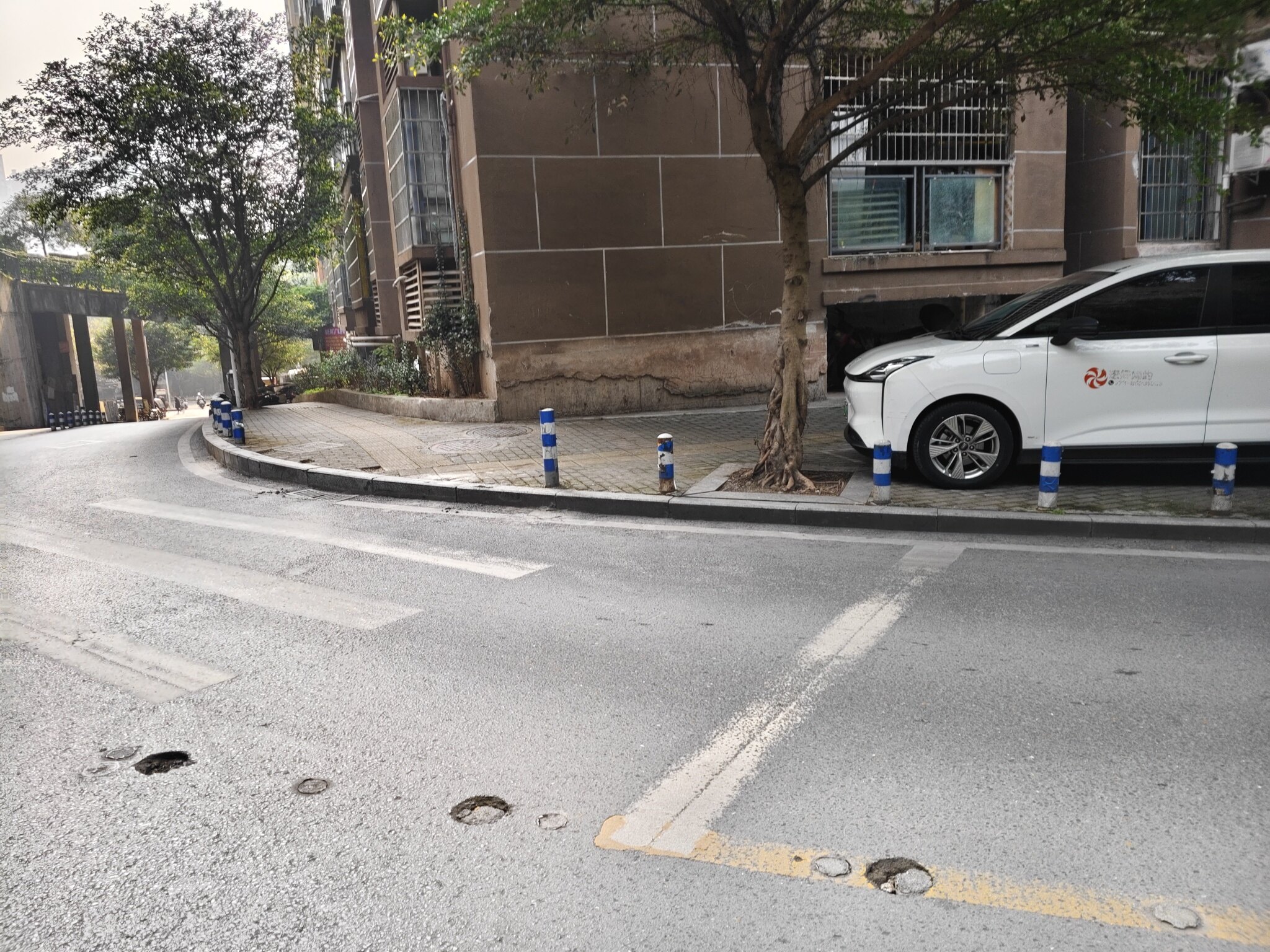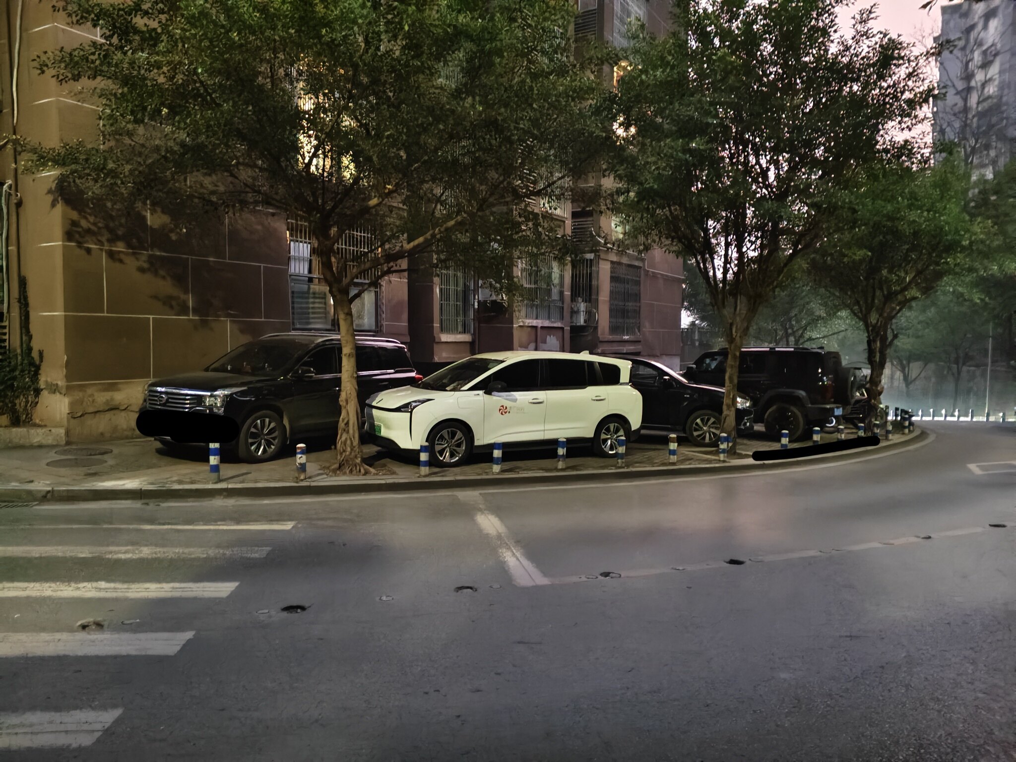 晚上回来看,果然遭把路口挡了