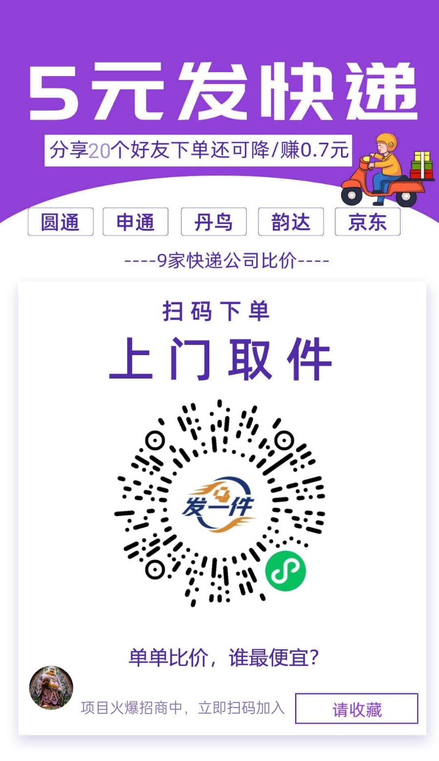 扫码下单,5元起发快递,上门取件