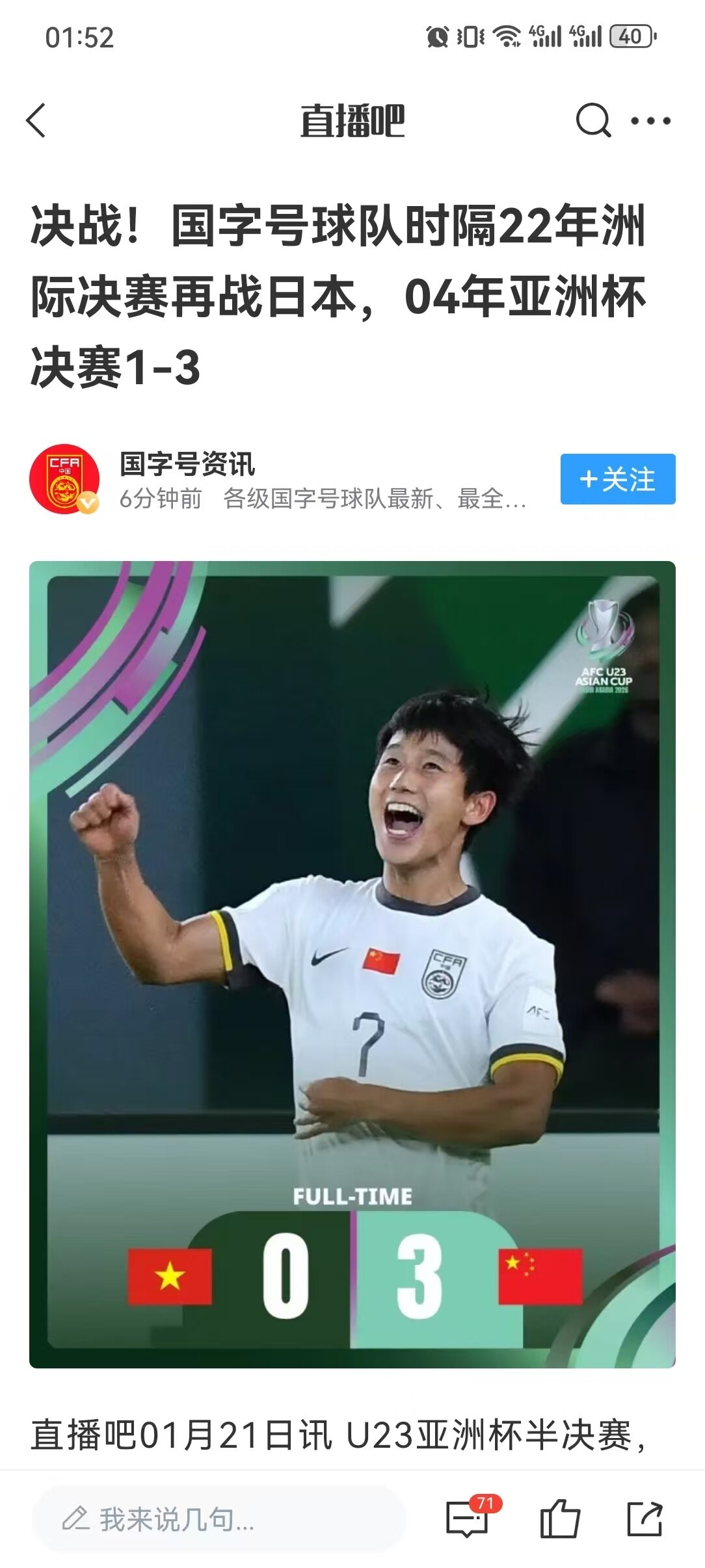恭喜中国队u23亚洲杯杀进决赛