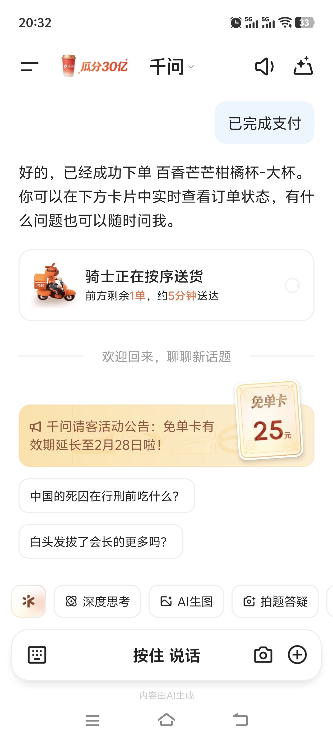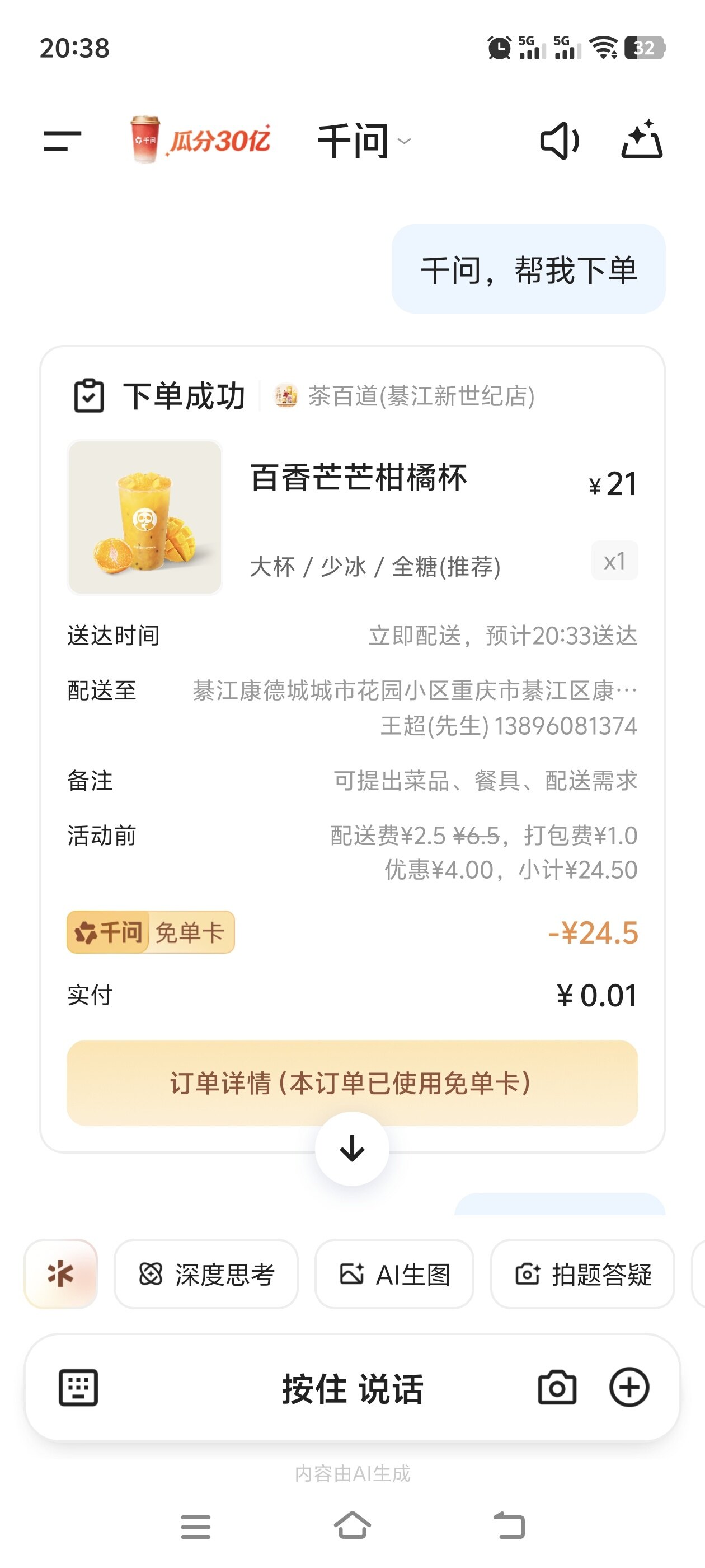 千问给你免单喝奶茶啦 大家可以免费下单啦