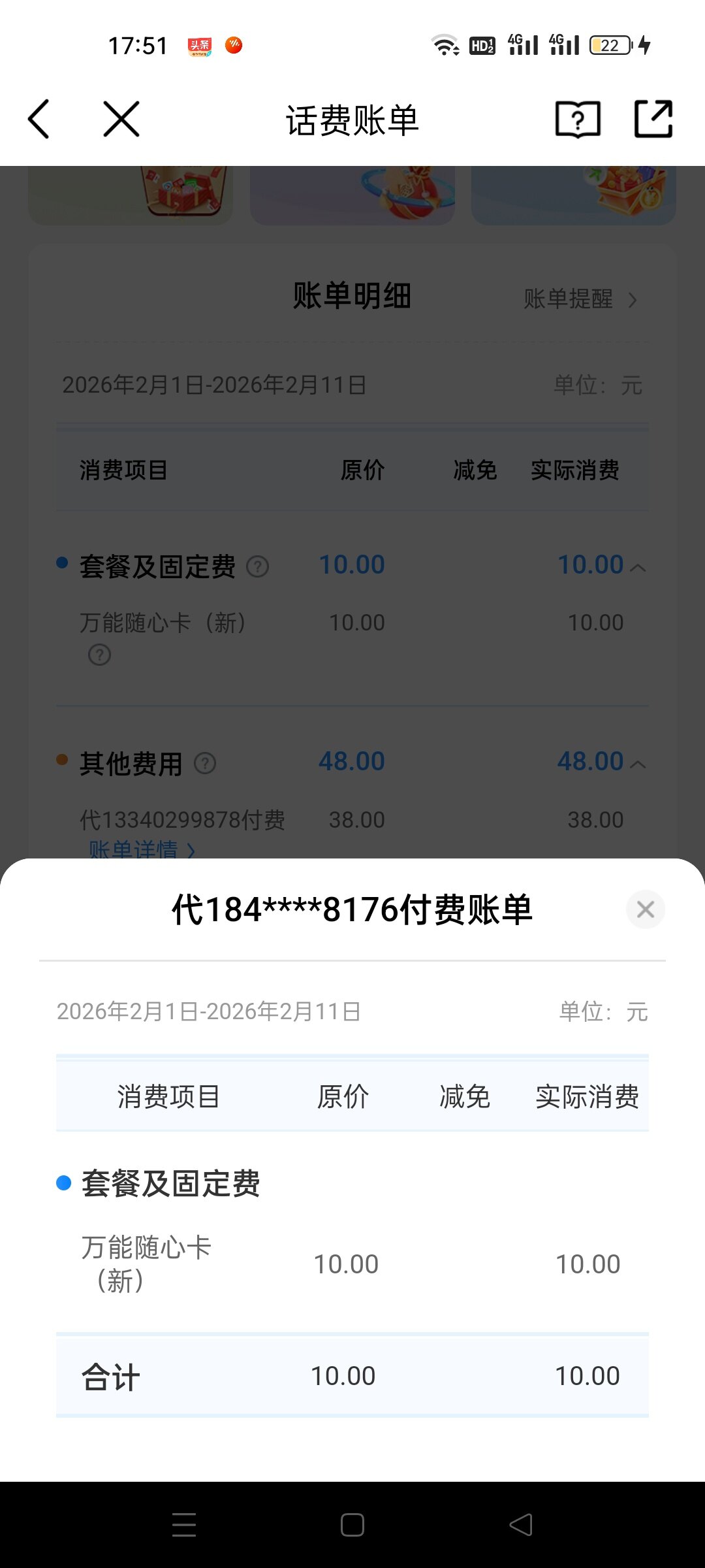 我了58元宽带费,电话一起