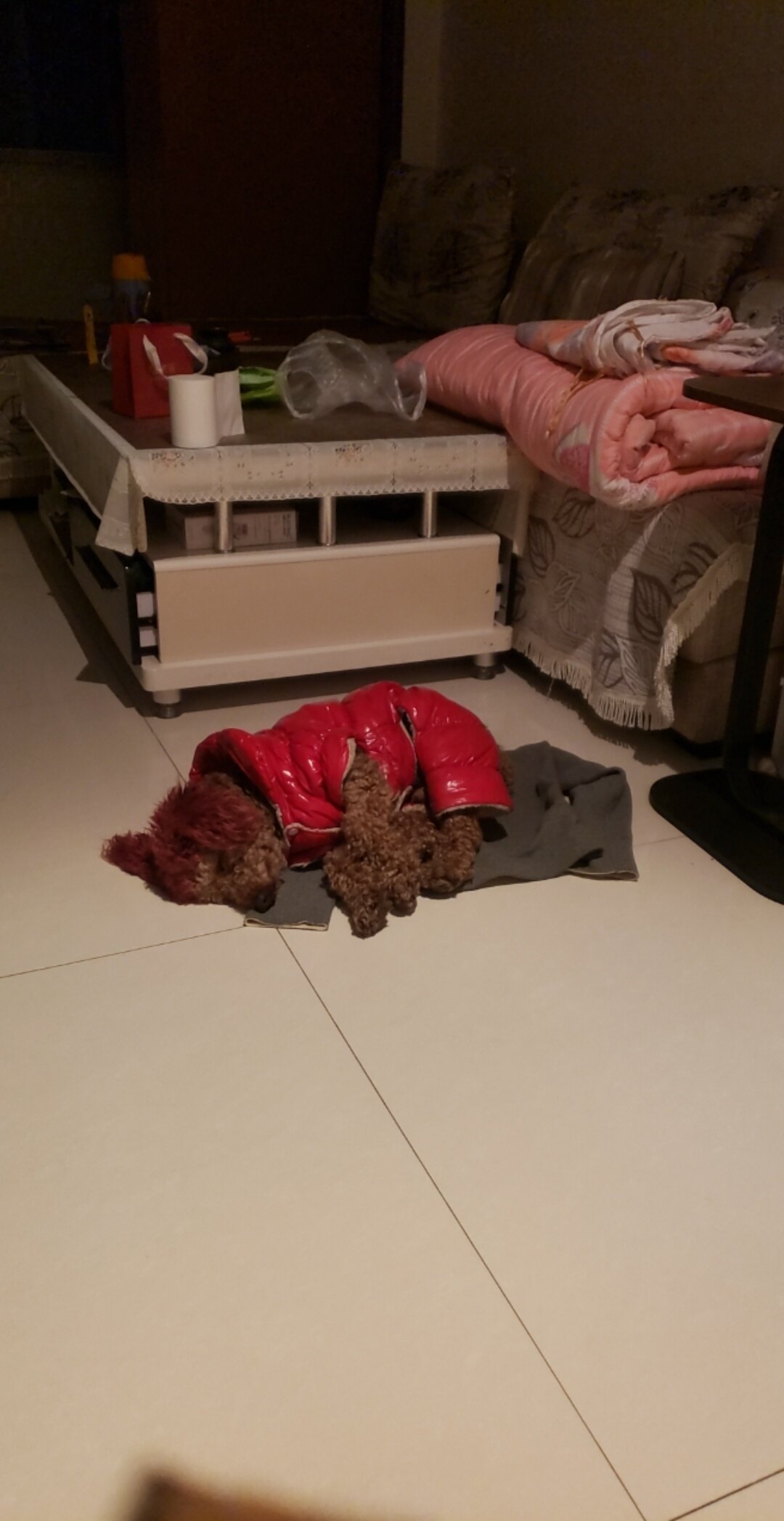 今天在五福路,穿红色皮衣泰迪大',头染综紅色,现跟我一路从荣润侩峰,再至实验中学。狗很乖巧 ,知情人可留言联系。