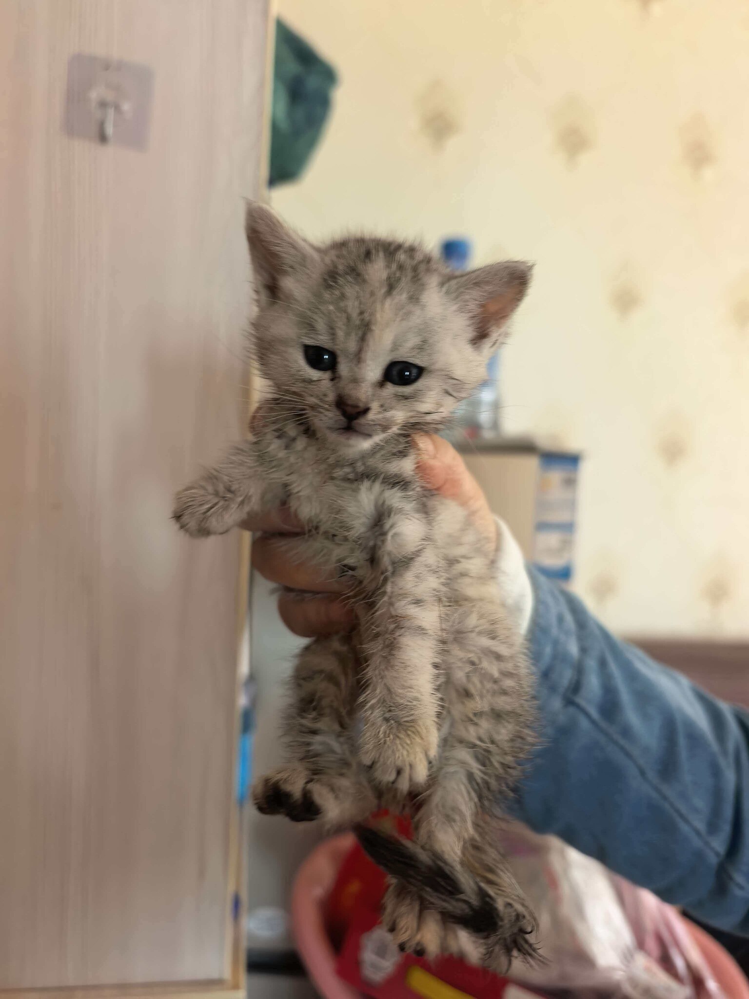 一个月的纯种英短银渐层小猫,健康活泼,毛色漂亮,性格粘人,家养的,没跳蚤,爸爸妈妈都是英短银渐层,品相好, 有猫砂,猫砂盆,猫粮,猫羊奶粉。 跟猫一起给綦江自提,299喜欢私聊看猫