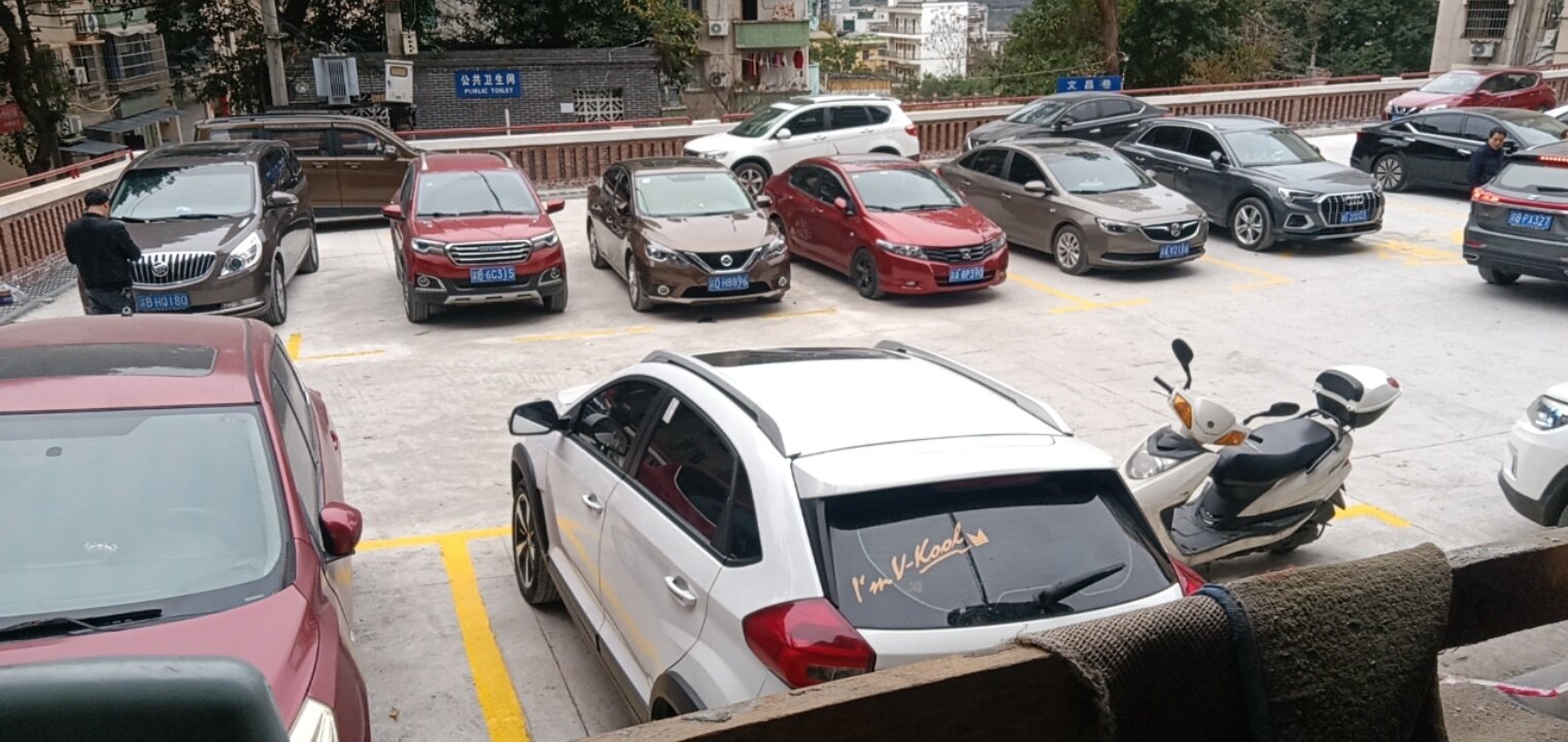 这里是綦江区古南镇百步梯文昌巷的停车场,这个停车场灰尘太多,严重影响居民的身体健