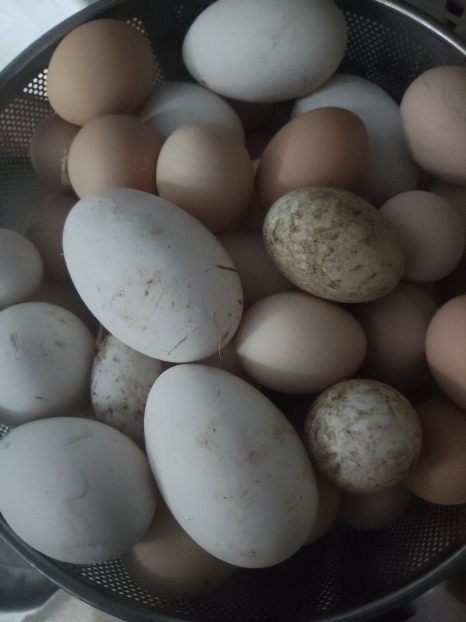 自家养来吃点,没有喂饲料,纯粮食菜叶喂的,土鸡蛋土鸭蛋