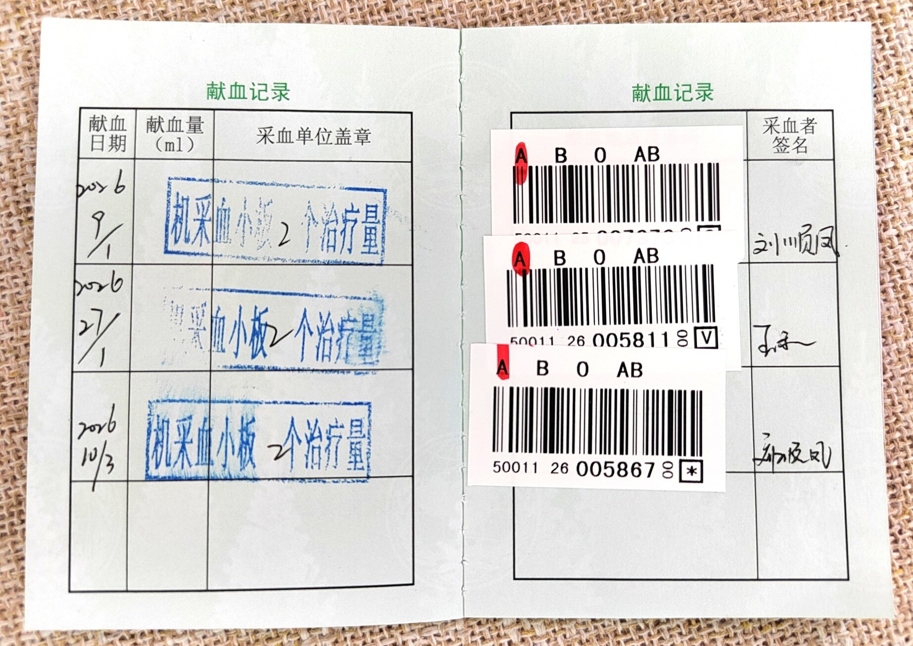 今年第三次捐献血小板。