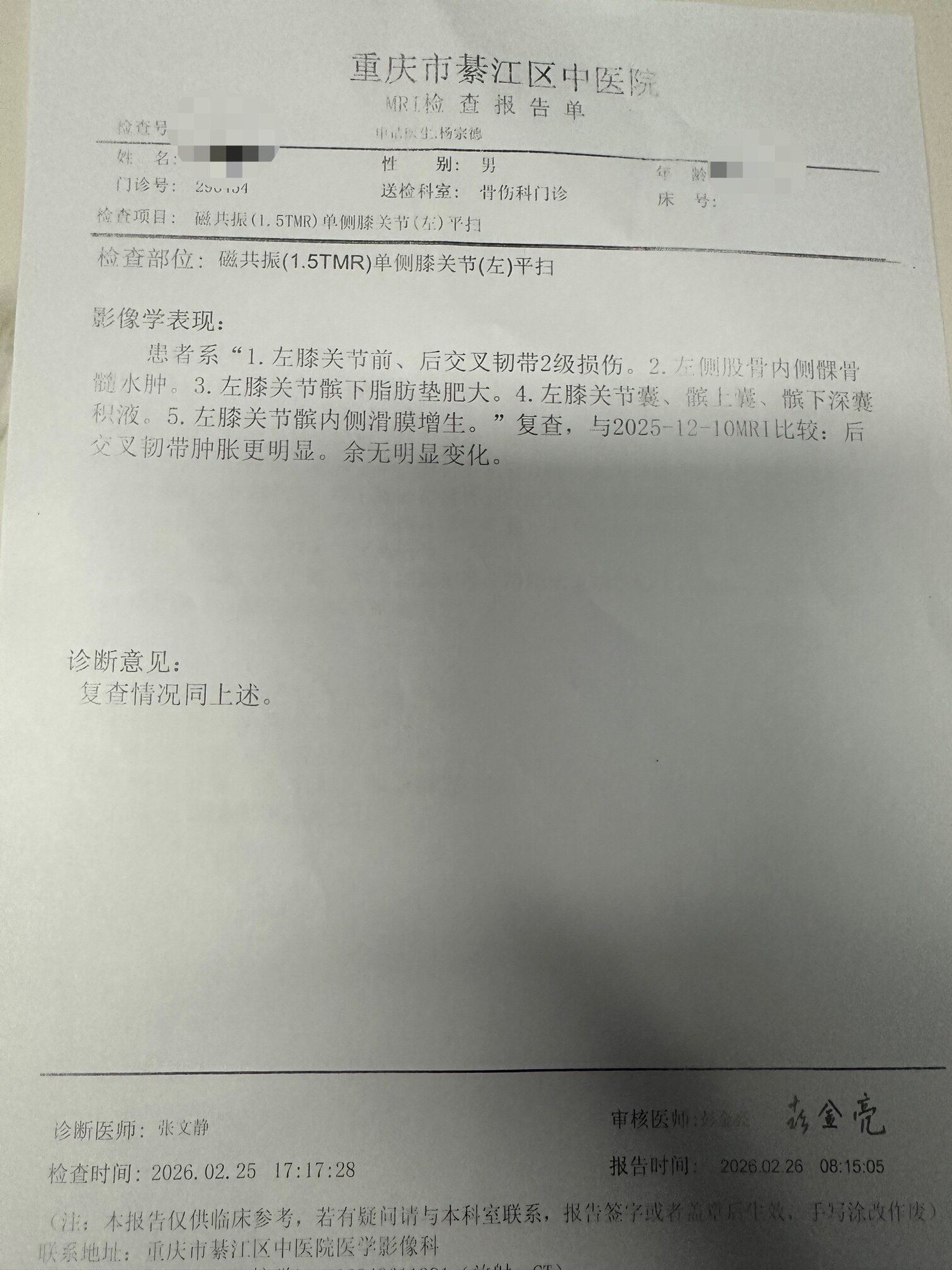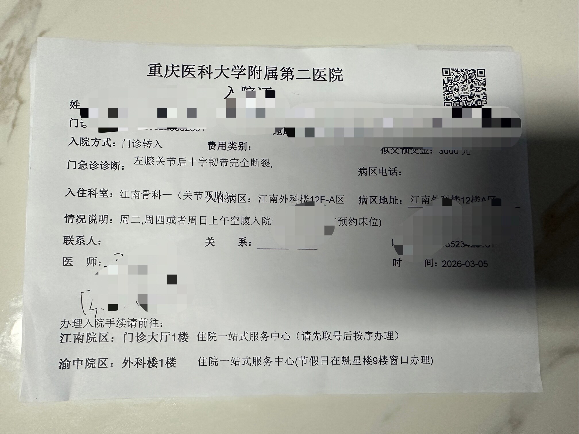 ~好运连连~ 发表于 2026-03-11 21:41 沱湾那个所谓的三甲医院还不是一样的,去年九月份我脚杆遭摔了,快到下班时间了去的,门诊医生就先给我开了一个拍片,拍片的结果出来了就去住院部找医生看结果,没有骨折。住院部那个医生就说是韧带拉伤,喊我住院打石膏。我真的觉得那医生就凭一个拍片结果,又没有骨折,还要喊我住院打石膏,无语啦