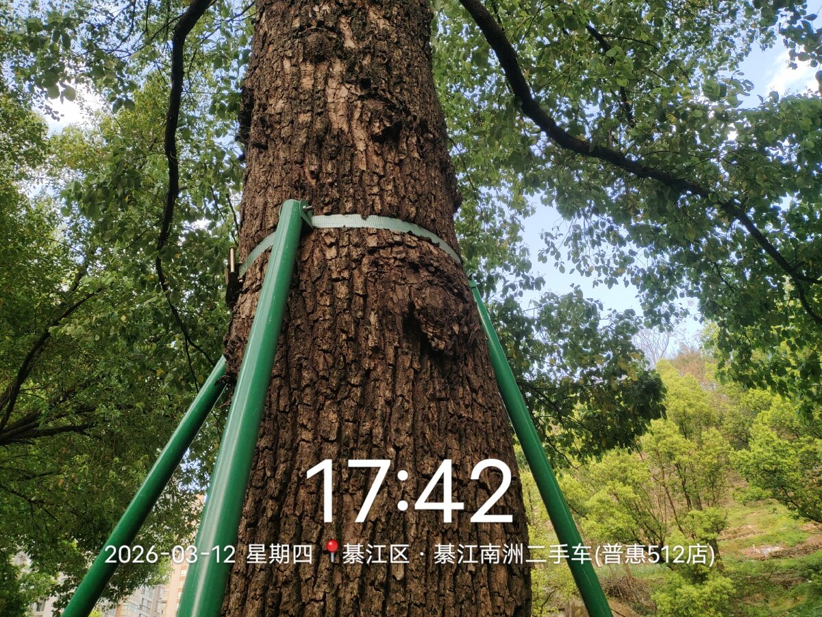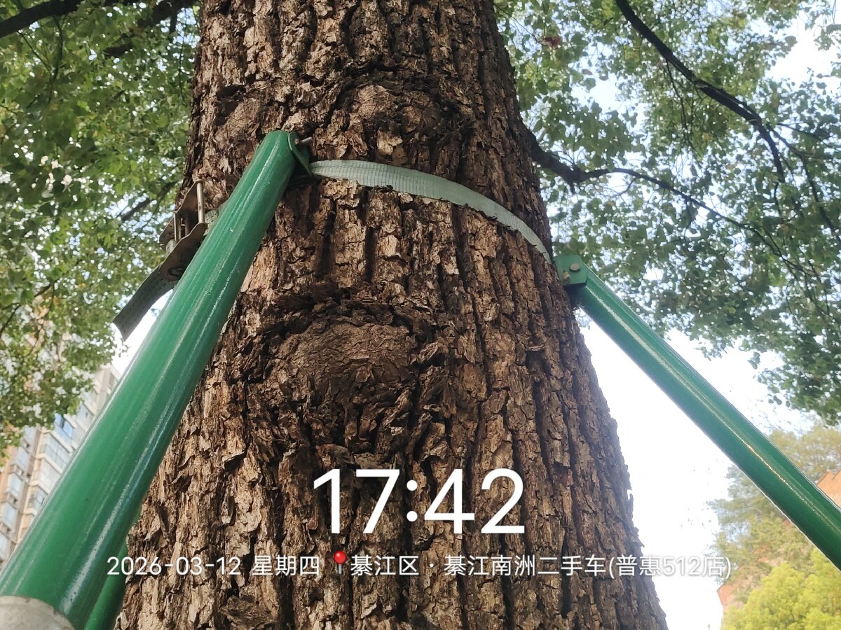 文龙街道长生路俗称香樟大道,ZF早期为稳定才种的大树不被大风吹倒做了加固处理。现多年过去,树已扎根,但是绑带却慢慢嵌入树干,就像腰围3尺的人硬栓了一根2尺8的皮带。请有关部门高抬贵手