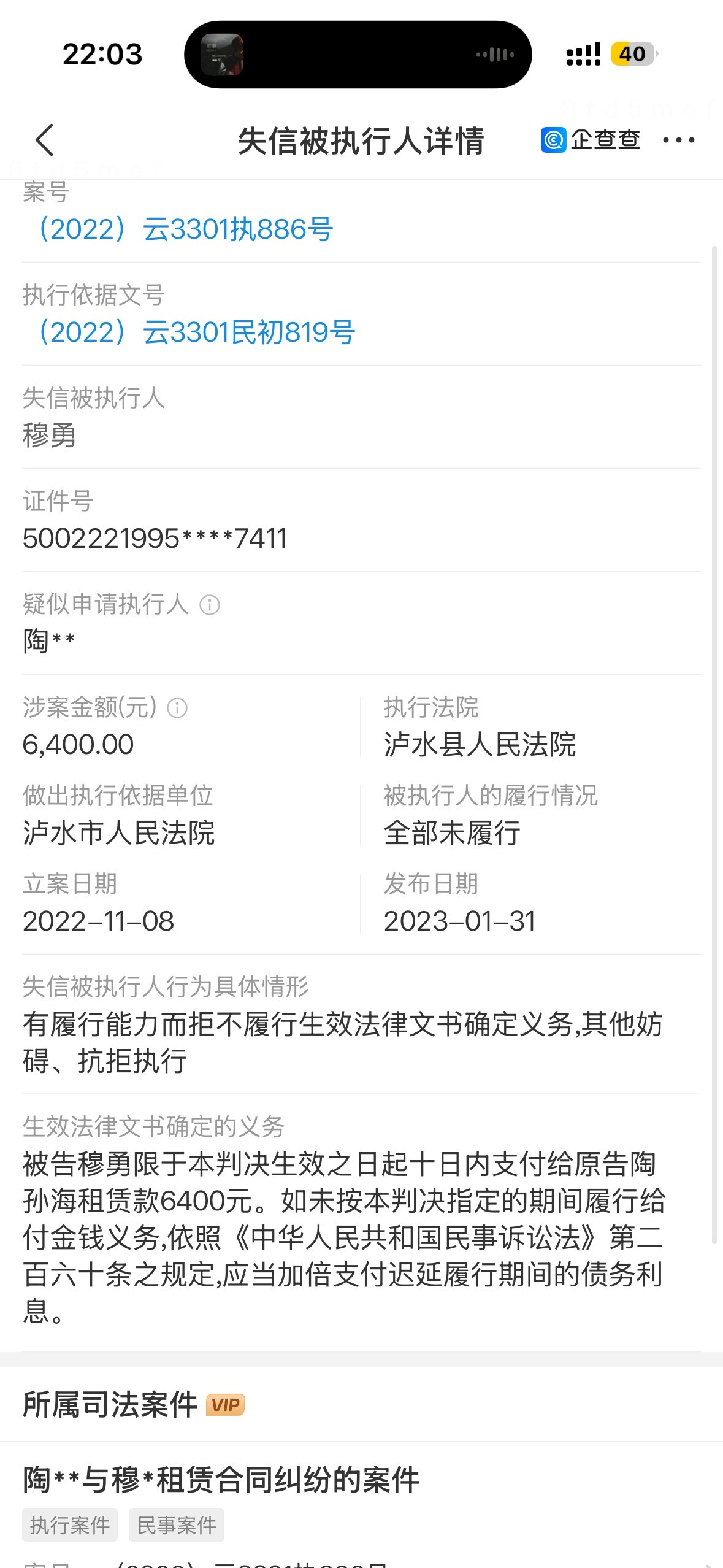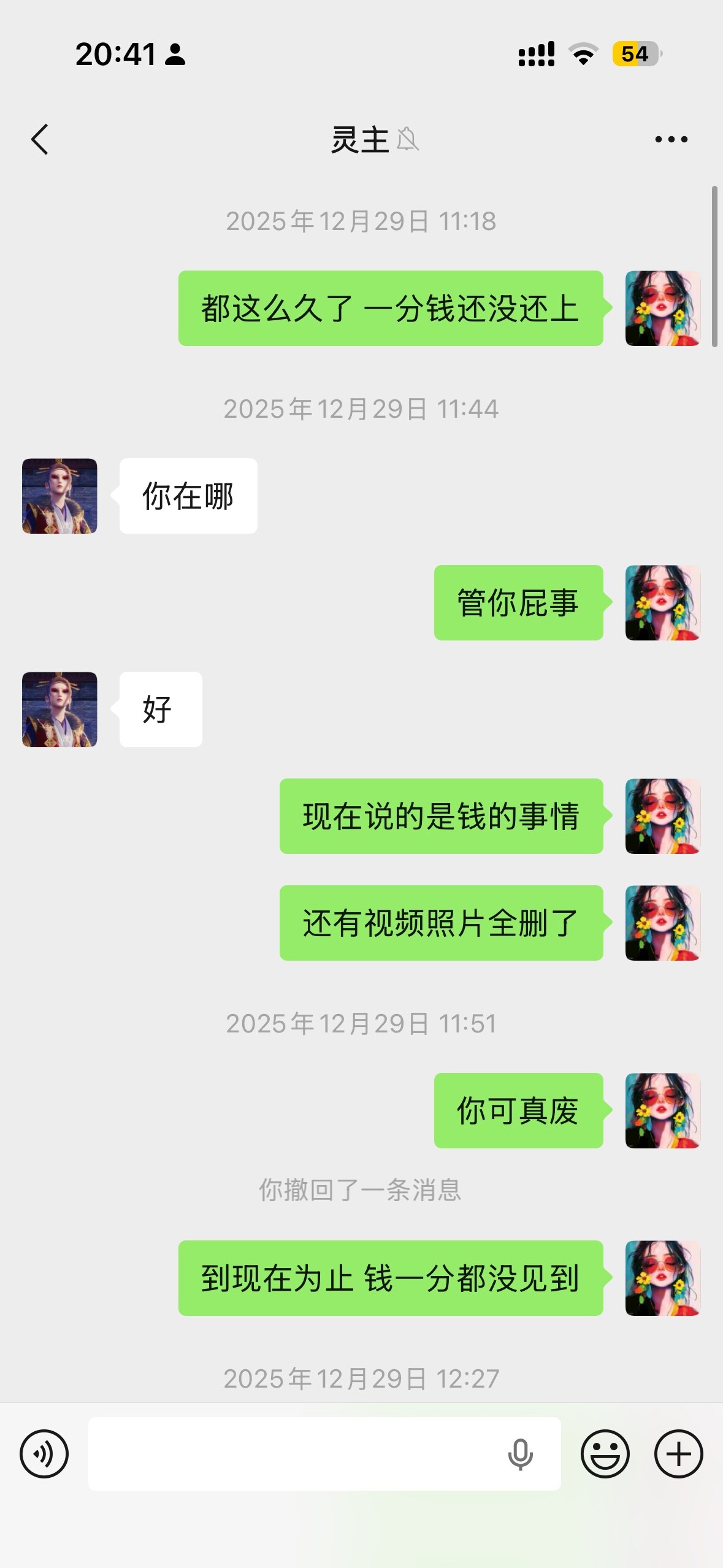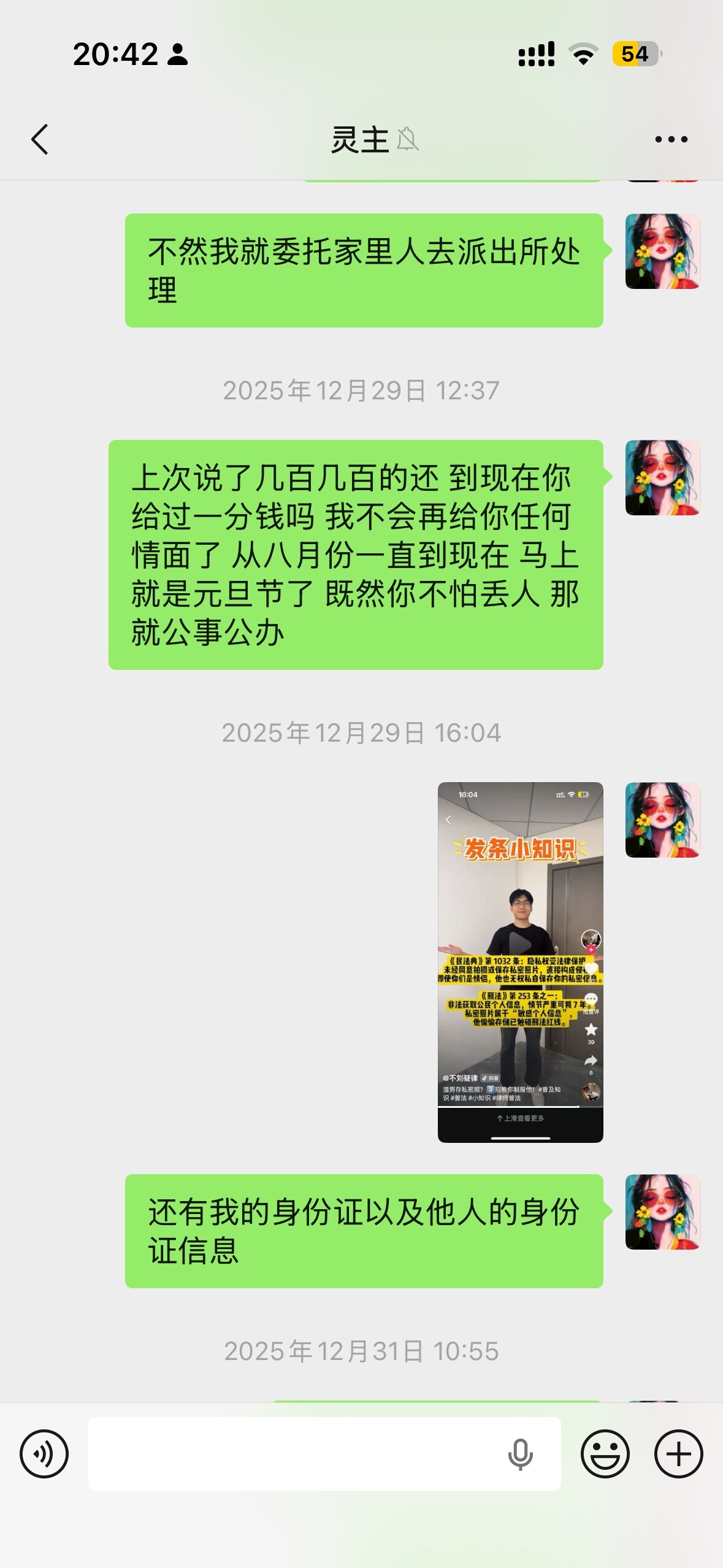 穆勇欠我9000块钱不还,还私自拍了我的身份证和视频,威胁我,我让他删他也不删,完全不理人。