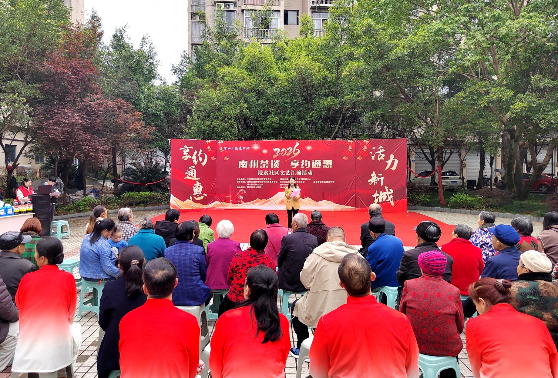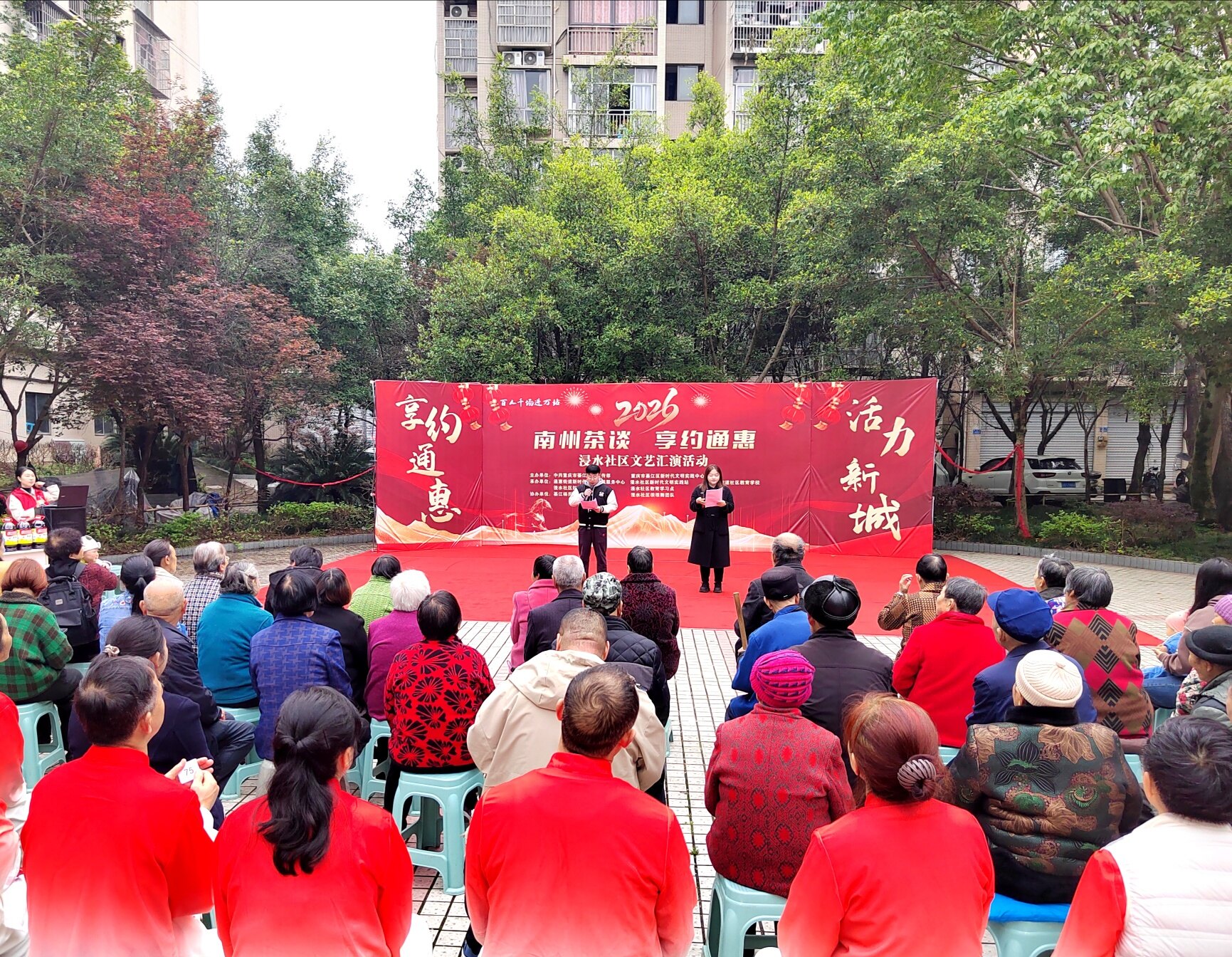 3月27日上午,通惠街道浸水社区康居雅苑小区内热闹非凡,2026年綦江区新时代文明实践“南州茶谈”之“享约通惠”专场活动在此火热开展。居民们自编自导自演,以文艺表演与理论宣讲交织的形式,把文明实践搬进小区,让邻里在欢声笑语中共享文化盛宴 。