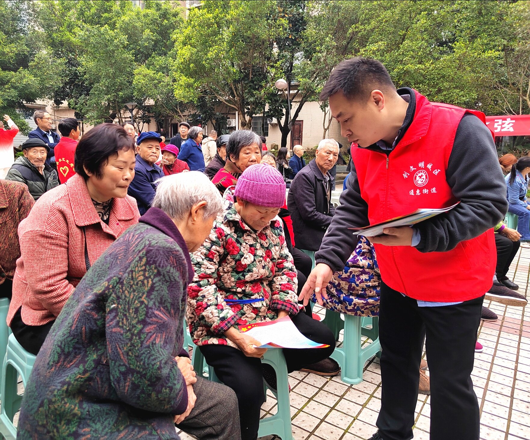“讲理论”环节干货满满!綦江区民政局李钰莹围绕残疾人福利保障政策展开细致宣讲,结合实际案例拆解政策要点,为有需要的居民答疑解惑,让惠民政策精准触达群众 。随后,社区杜长其书记带来《奋楫扬帆新征程 凝心聚力谱新篇——党的二十届四中全会精神宣讲》,用通俗易懂的语言解读核心要义,推动全会精神深入人心。