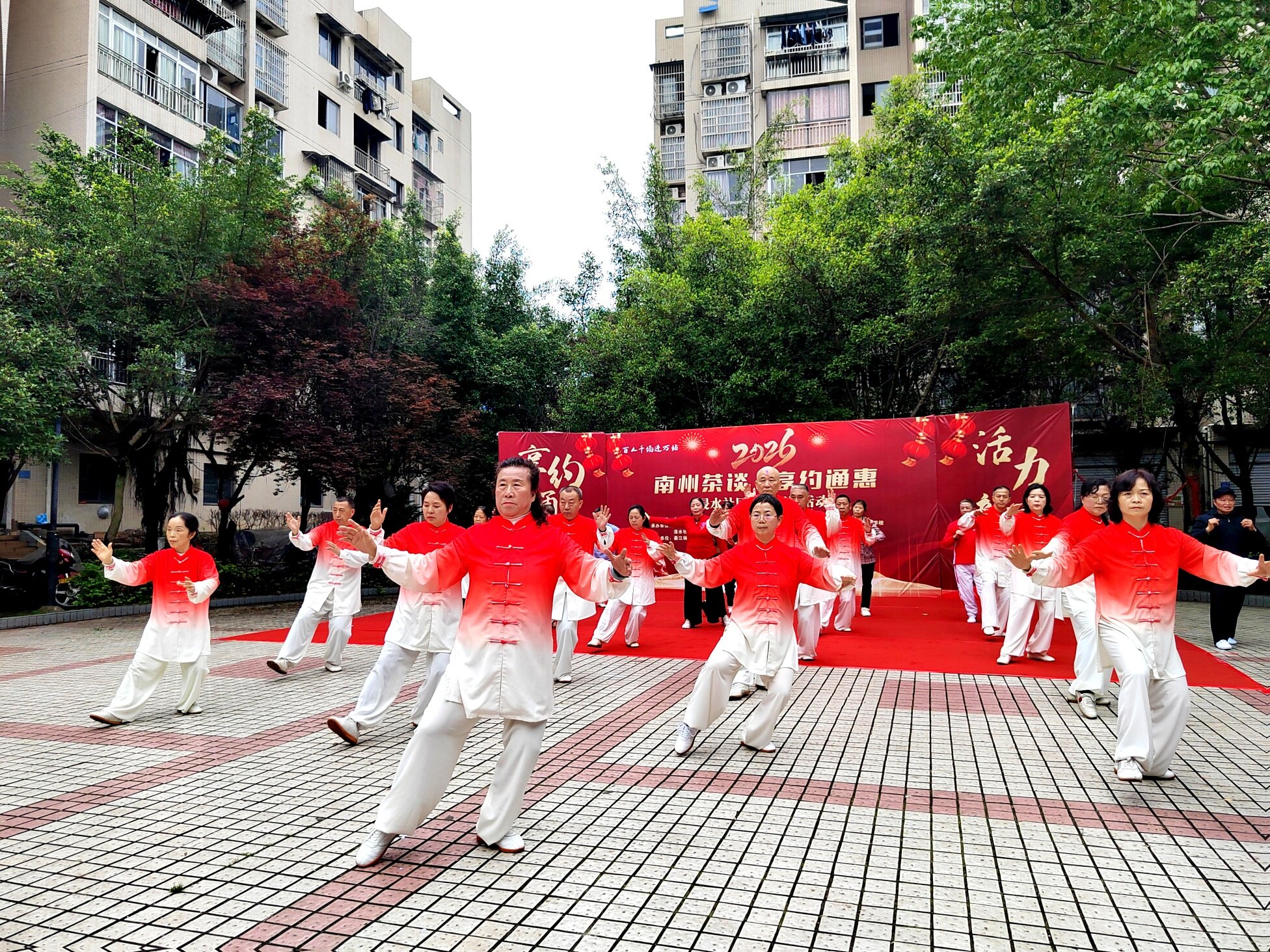 活动在热情洋溢的腰鼓舞《中国歌最美》中拉开帷幕,整齐的步伐、灵动的腰姿,瞬间点燃现场氛围,居民们的掌声与喝彩声此起彼伏,拉开整场活动的欢乐序幕 。