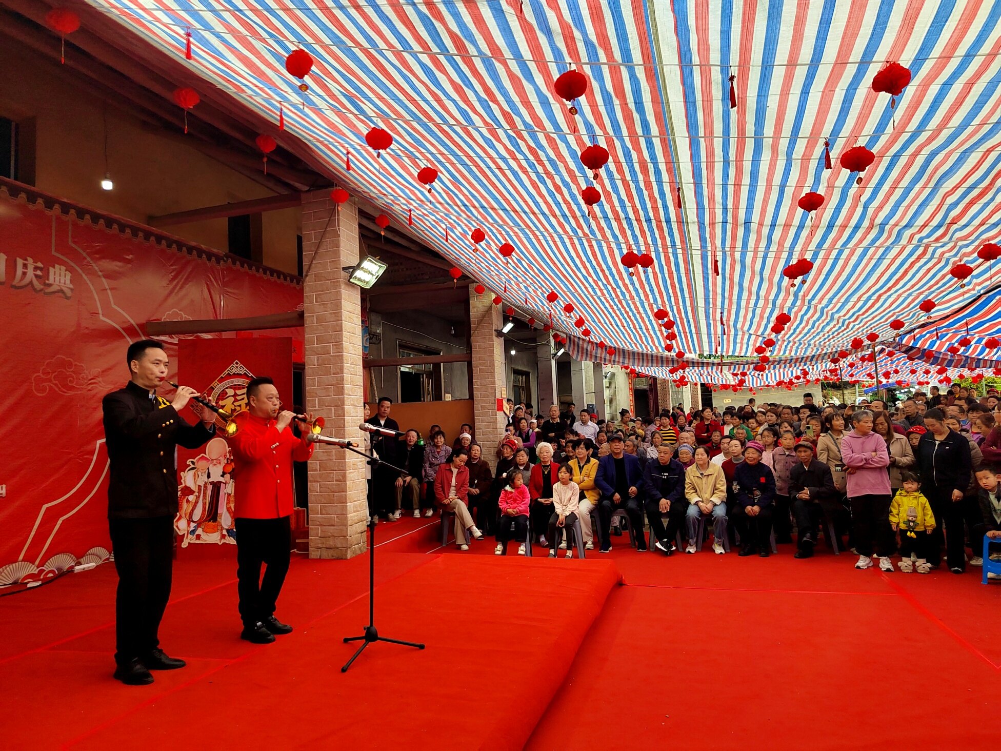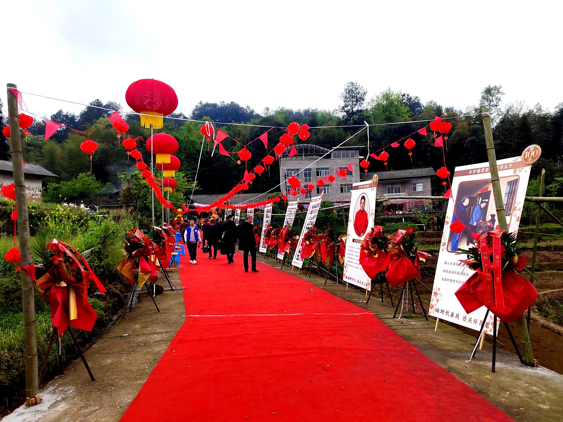 4月11日上午,綦江区郭扶镇龙泉村张府门前热闹非凡,鲜艳彩旗迎风招展,悠扬喜庆的音乐传遍村落街巷,现场人头攒动、人声鼎沸,处处洋溢着温馨祥和的浓厚氛围,邓显梅老人百岁寿宴庆典在此隆重举行,四方亲友、邻里乡亲齐聚一堂,共同为百岁老寿星送上真挚祝福。