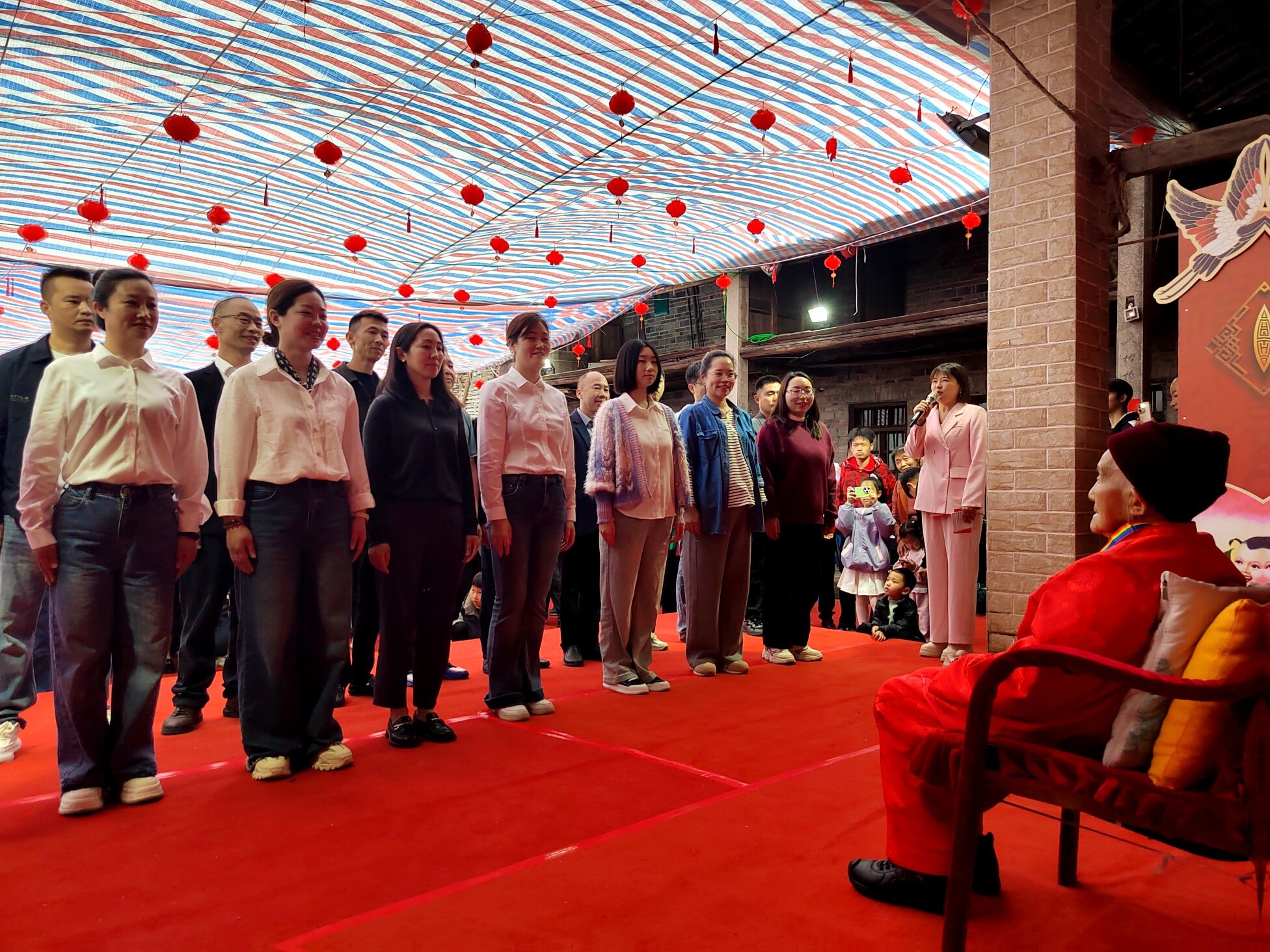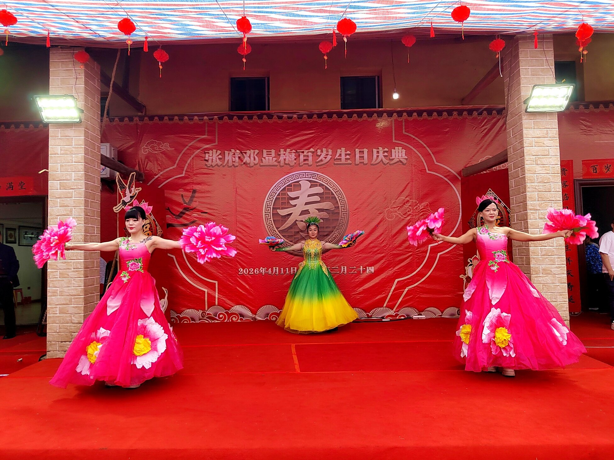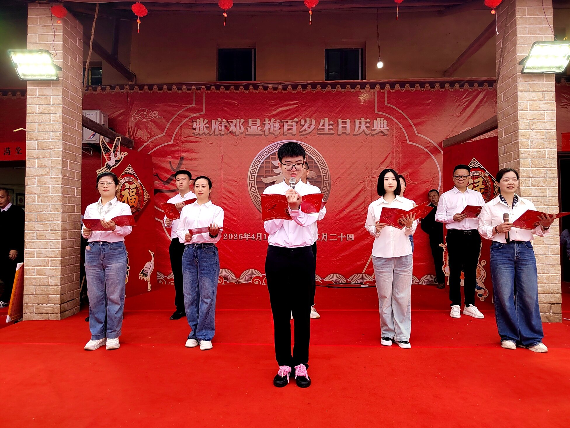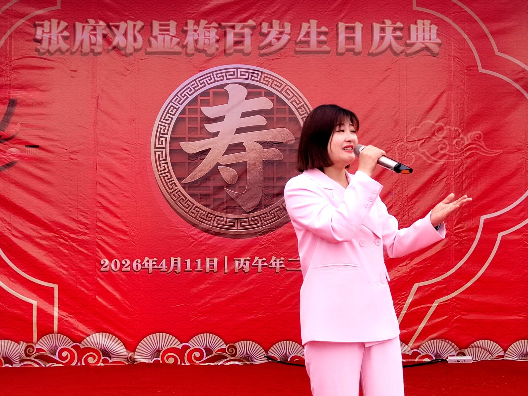 寿宴庆典接近尾声,邓显梅老人的子女们一同走上台前,向所有到场的嘉宾、演职人员以及帮忙筹备的乡亲们深深鞠躬,再次表达最诚挚的谢意。整场百岁寿宴庆典温馨有序、喜气洋洋,既展现了张府阖家团圆、孝老爱亲的良好家风,也彰显了全社会尊老、敬老、爱老、助老的文明风尚,为邓显梅老人留下了一段难忘而美好的百岁寿辰记忆。