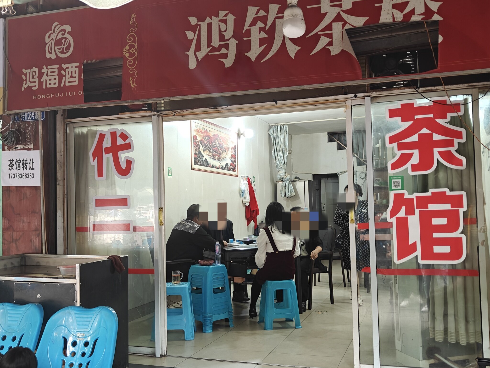 店铺位于綦江区九龙大道-帝王坝坝,上下两层结构,内设7张机麻,户外可外摆喝茶,休闲娱乐两不误。
