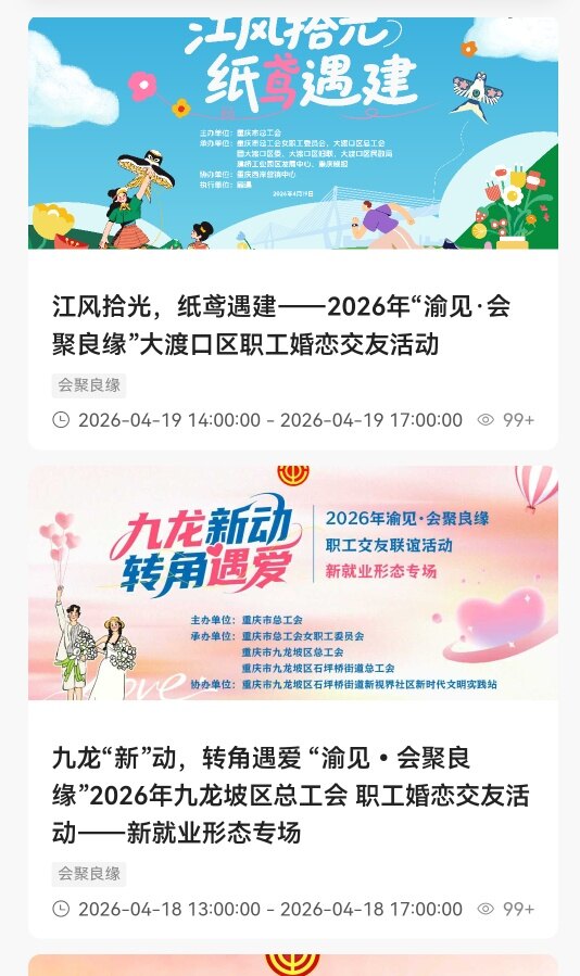 这个是重庆总工会举办的,只是选在了这两个区,这个只是交友活动,也可以找红娘帮忙牵线