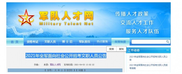 近日, 军队人才网发布了《2021年全军面向社会公开招考文职人员公告》。本次招考,重庆也有岗位,小编特地整理出来,有适合自己岗位的小伙伴,快来报名吧! 来源:军队人才网 如需查看更多详细内容请点击> ...