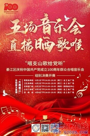 【预告】明天起,连续5场音乐会激昂来袭,一起向党“声”情告白! 有党才有国 有国才有家 有家才有我 为庆祝中国共产党百年华诞 “唱支山歌给党听” 綦 ...