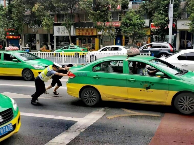 7月9日7时40分许,綦江区公安局交巡警辅警黄小秋、刘永隆巡逻至文龙街道九龙大道文化馆路口时,发现一辆出租车打开双闪停在路中间。 这个时间正值该路段早高峰,过往车流量较大,为及时处理突发情况,保持 ...