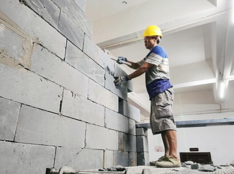 第一张照片问题很大: 1、安全帽未正确佩戴 2、2米及以上高空作业未挂安全带 3、灰缝严重不饱满不符合竖向80%,水平90%的要求 4、原材料不符合要求缺愣断角且存在断砖上墙 以上问题请立即整改,方可进入下道工序。 |