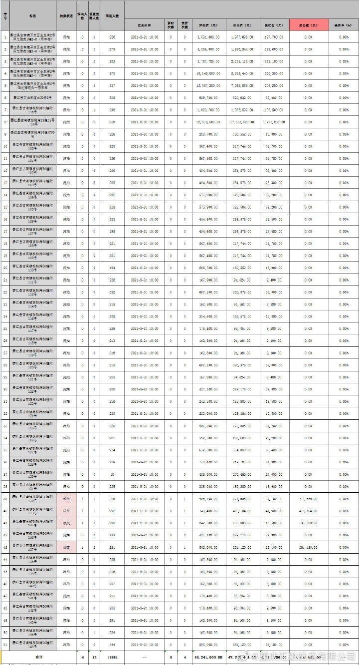 【匯融拍賣】祝贺五中院在淘宝司法网拍卖结束!【綦江县古南镇核桃湾】共计51个分零标的物,今日共计成交4个标的,有47个标的流拍,成交总金额:1,107,680.00 元,各标的成交详情见表格。 来源:重庆汇 ...