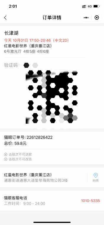 地点在红星国际 时间是今天下午5∶50 座位是第四排的中间两个 两张买成59.8 55转出