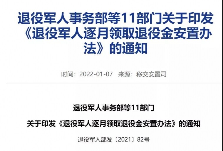 退役军人逐月领取退役金,细则来了! 近日退役军人事务部等11部门印发《退役军人逐月领取退役金安置办法》自2021年12月24日起施行这是我国退役军人安置政策的重大调整 退休年龄后,退役金变化 逐月领取退 ...