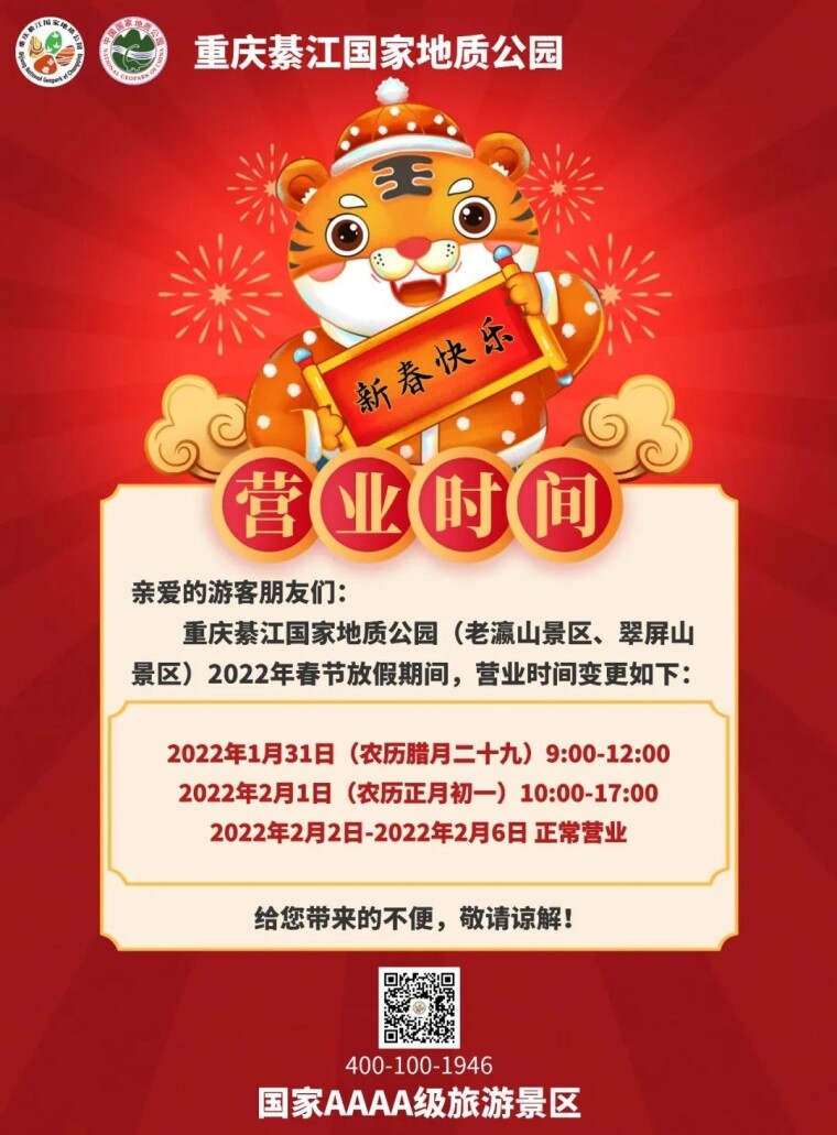 春节营业时间变更 来源:重庆綦江国家地质公园