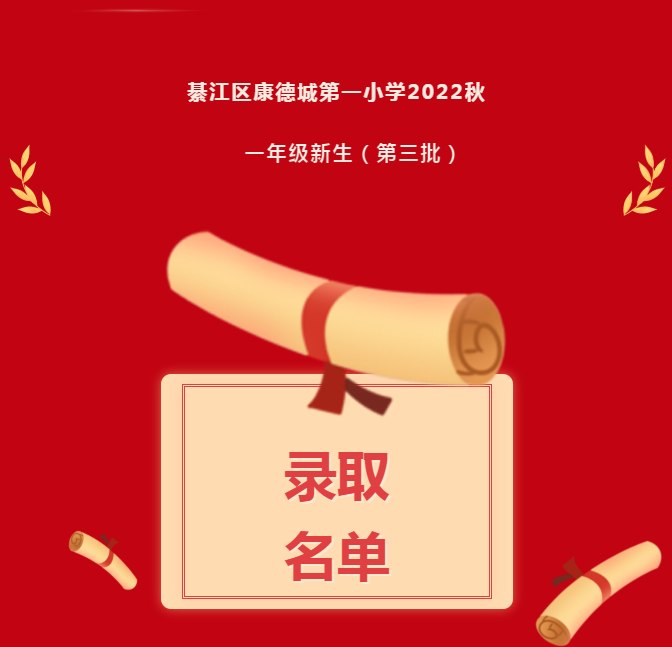 康德城第一小学2022年秋一年级新生(第三批)录取名单 来源:重庆市綦江区康德城第一小学