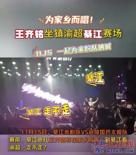 11月15日,綦江米粉队VS涪陵国药太极队。赛前,王齐铭将在家乡献唱。到綦江看渝超,走不走? △视频截图 来源:抖音“勒是綦江”