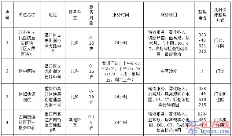 关于公布綦江区公立医疗机构儿科诊疗服务信息的通告 我市目前进入冬春流感季节性流行期,监测数据显示流感疫情呈快速上升趋势。根据市卫生健康委工作要求,现将2025年綦江区公立医疗机构儿科诊疗服务信息公布如下 ...