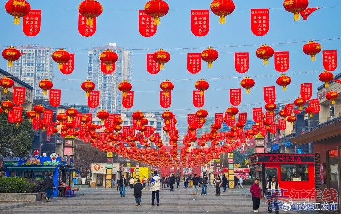 【年味渐浓】新春佳节临近,綦江金街挂满了红彤彤的灯笼,节日氛围预发浓厚。 来源:綦江发布微博
