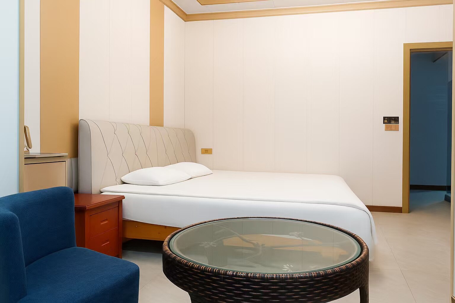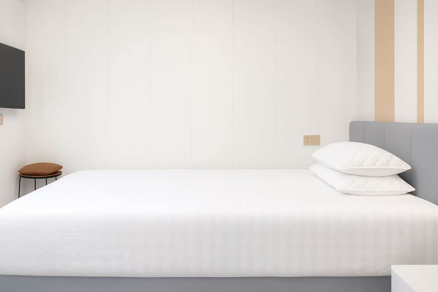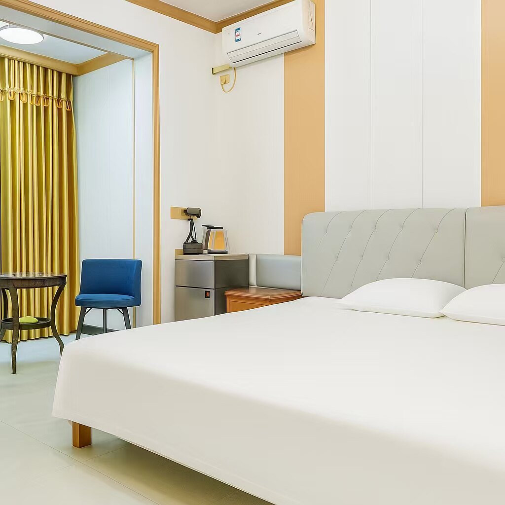 1米5双人床的单间带卫生间,均价100元起至120元左右;