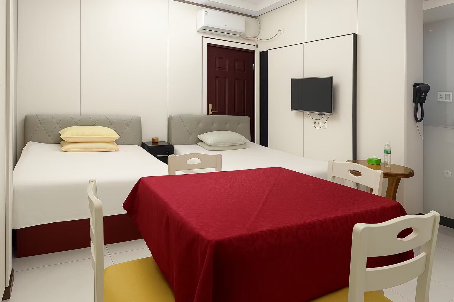 1米5加大床房及2米4双床带麻将的大床房单间配套和标准间麻将大床房配套,价格不低于150元起。