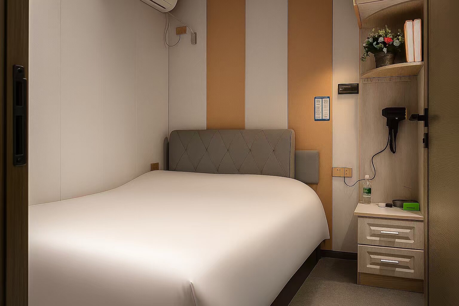 小单间配备1米2单人床,价格60元起至80元。