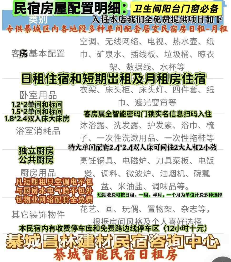 长供私有产房改装独立门户的单间配卫套窗(另配厨具)及居室配置带厨房厅室独卫民宿。全实名登记备案系统入住。
