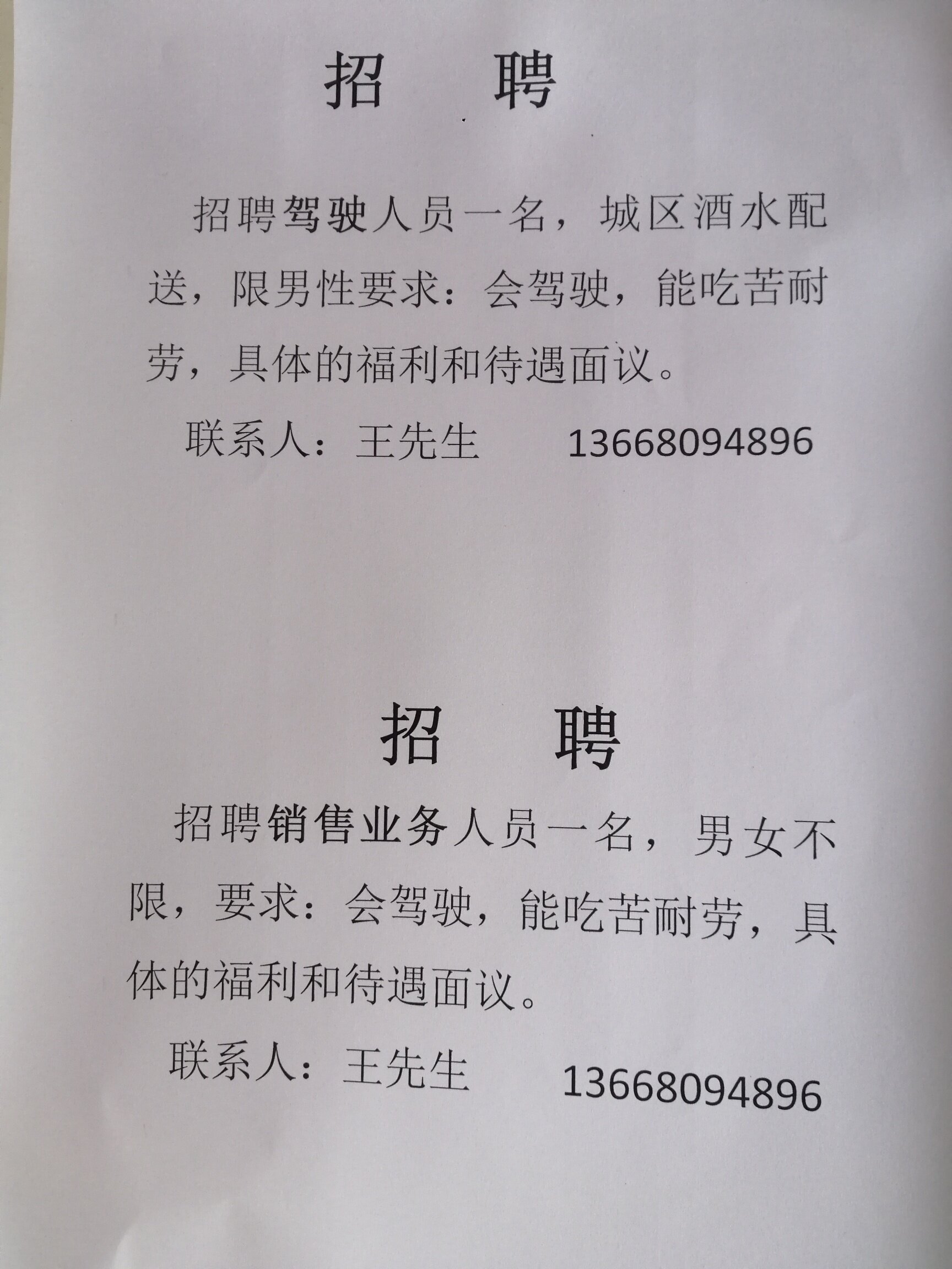 急招聘 |