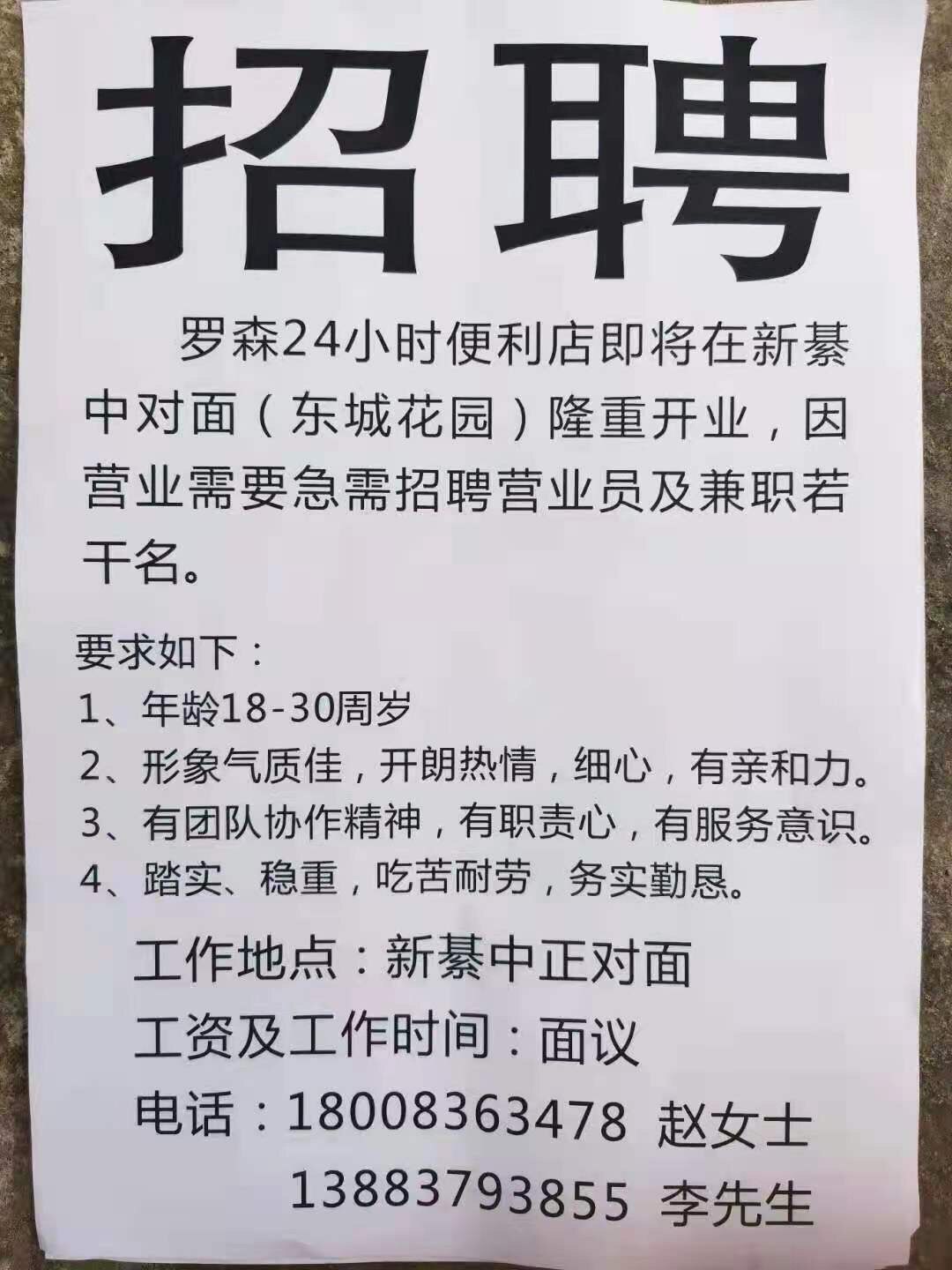 新綦中罗森便利店招聘服务员 |